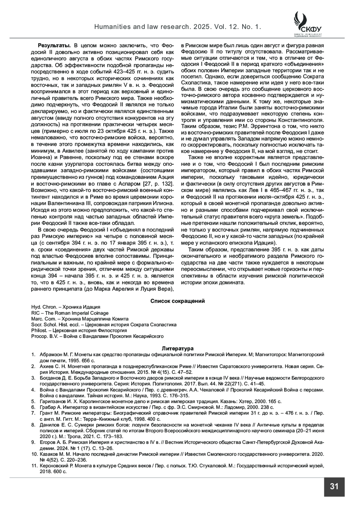 13. Кузнецов В. Н. Проблемы социально-экономического реформирования Римской империи в эпоху Феодосия Великого // Казанская наука. 2015. № 8. С. 26-29.