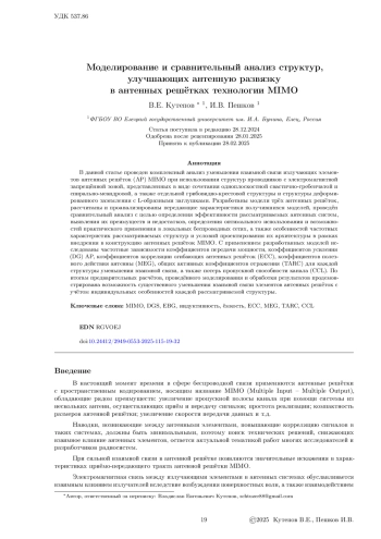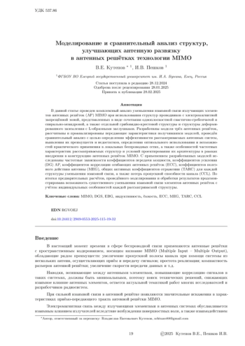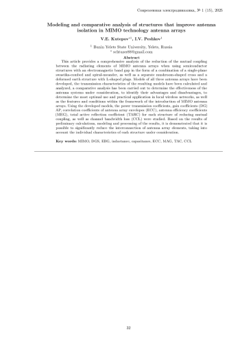 5. Elabd R. H., Al-Gburi A. J. A. Super-compact 28/38 GHz 4-port MIMO antenna using metamaterial-inspired EBG structure with SAR analysis for 5G cellular devices // Journal of In frared, Millimeter, and Terahertz Waves, 2024. Vol. 45. No. 1. pp. 35-65. DOI: 10.1007/s10762-023-00959-6 EDN: WCPKZO