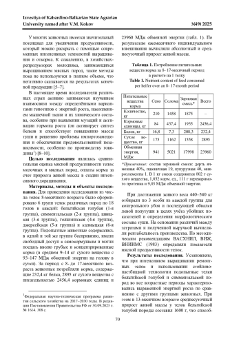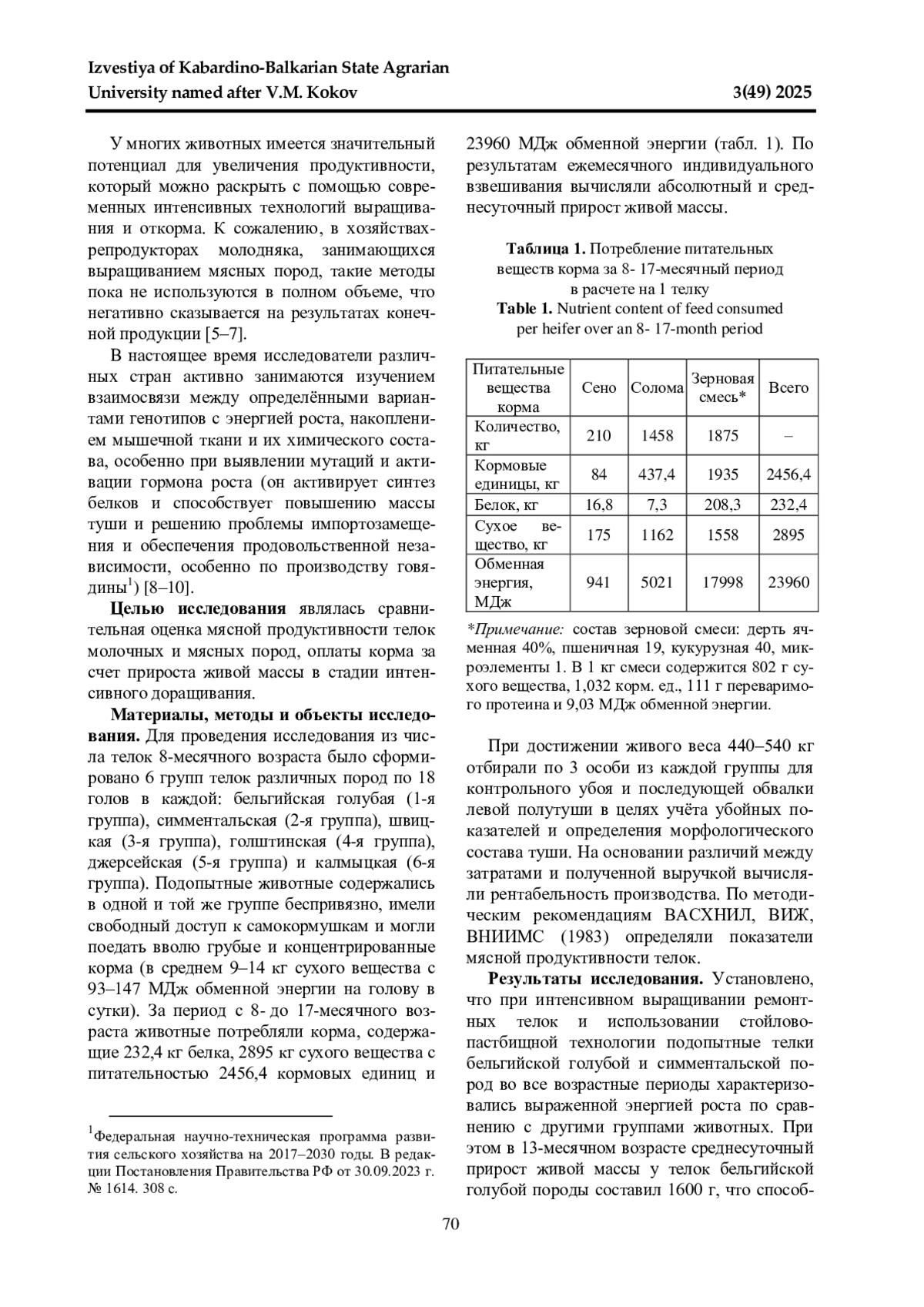 Статья: ТРАНСФОРМАЦИЯ СУХОГО ВЕЩЕСТВА И ЭНЕРГИИ КОРМА В ПРОДУКЦИЮ ТЕЛОК РАЗЛИЧНЫХ ПОРОД (2025)