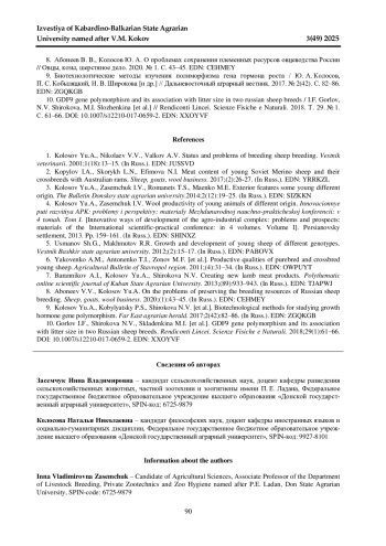 Журнал: ИЗВЕСТИЯ КАБАРДИНО-БАЛКАРСКОГО ГОСУДАРСТВЕННОГО АГРАРНОГО УНИВЕРСИТЕТА ИМ. В. М. КОКОВА