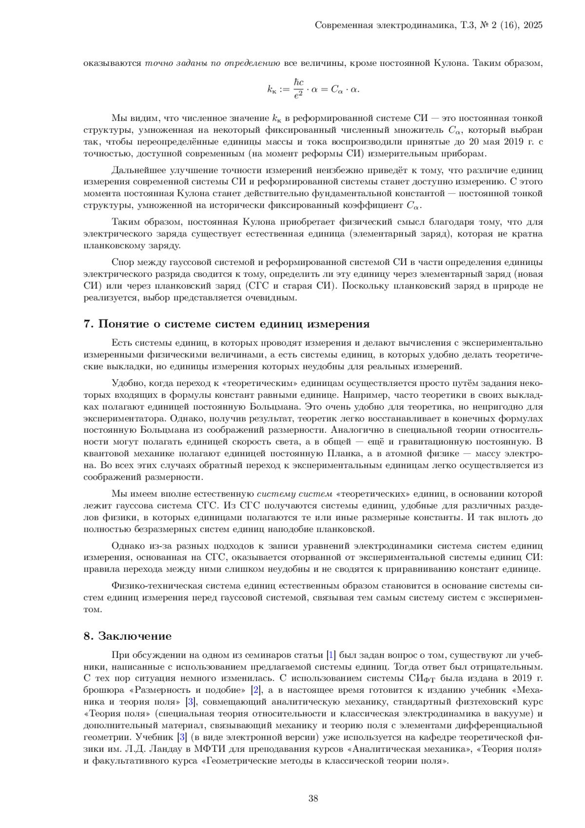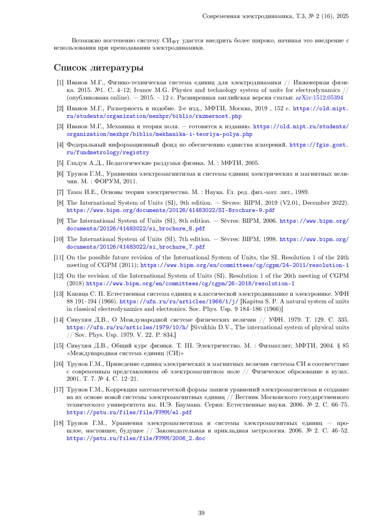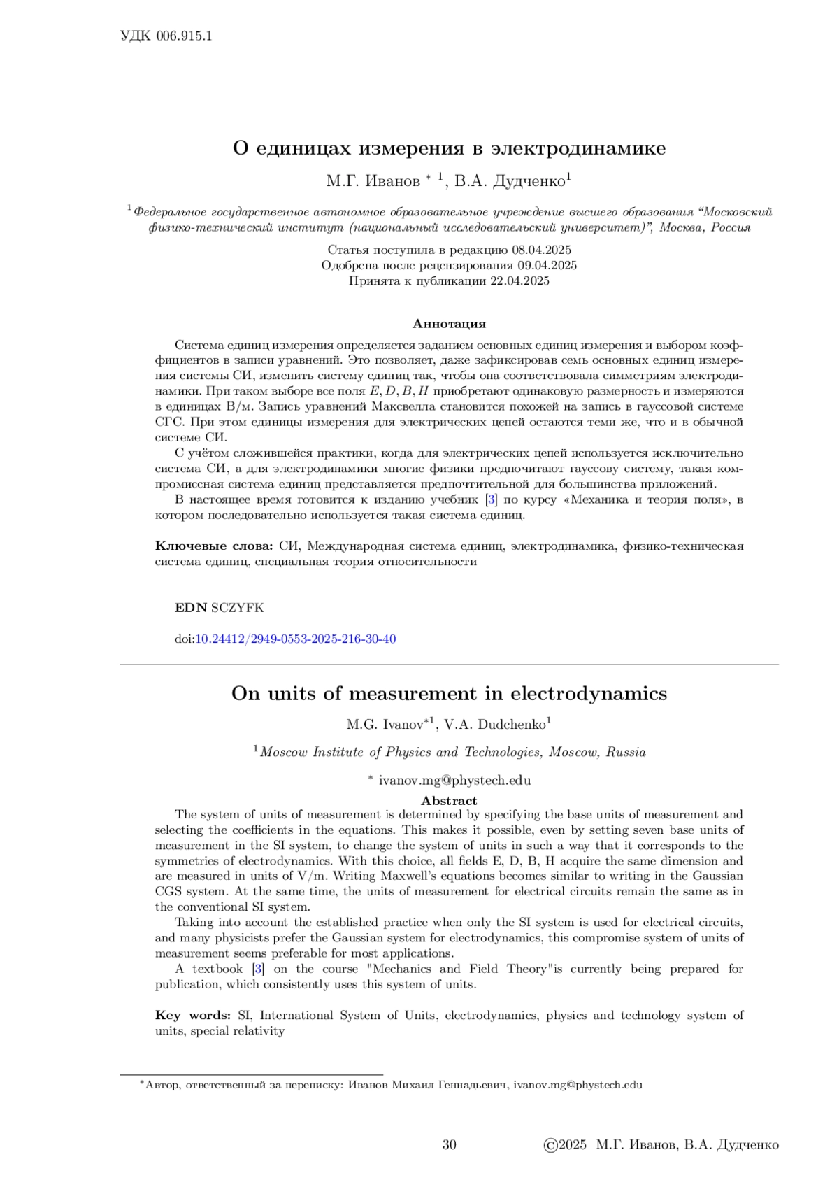 ИВАНОВ М.Г., ДУДЧЕНКО В.А. О ЕДИНИЦАХ ИЗМЕРЕНИЯ В ЭЛЕКТРОДИНАМИКЕ // СОВРЕМЕННАЯ ЭЛЕКТРОДИНАМИКА. 2025. № 2 (16), ТОМ 3
