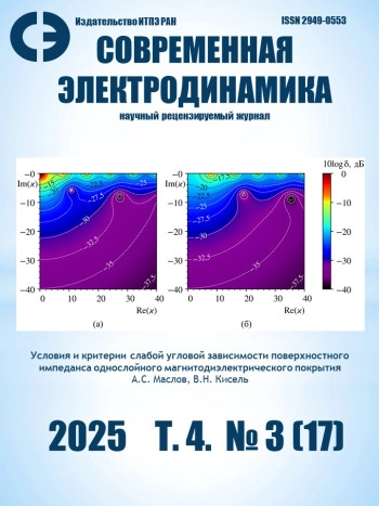 МАСЛОВ А. С., КИСЕЛЬ В.Н. УСЛОВИЯ И КРИТЕРИИ СЛАБОЙ УГЛОВОЙ ЗАВИСИМОСТИ ПОВЕРХНОСТНОГО ИМПЕДАНСА ОДНОСЛОЙНОГО МАГНИТОДИЭЛЕКТРИЧЕСКОГО ПОКРЫТИЯ // СОВРЕМЕННАЯ ЭЛЕКТРОДИНАМИКА. 2025. № 3 (17), ТОМ 4