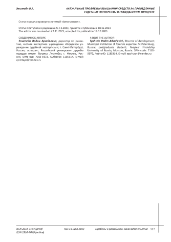 3. Кистанова Е. Проблемы оплаты экспертам вознаграждения за подготовку судебной экспертизы в арбитражном и гражданском процессе // Трудовое право. 2017. № 4. С. 61 - 70.