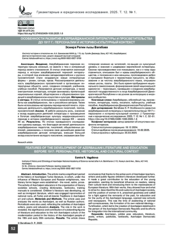 Анализ. В работе раскрыты роль, значение и вклад выдающихся деятелей литературы и просвещения в богатую азербайджанскую культуру модернизационного периода в истории азербайджанского народа ХIХ – начала ХХ вв.