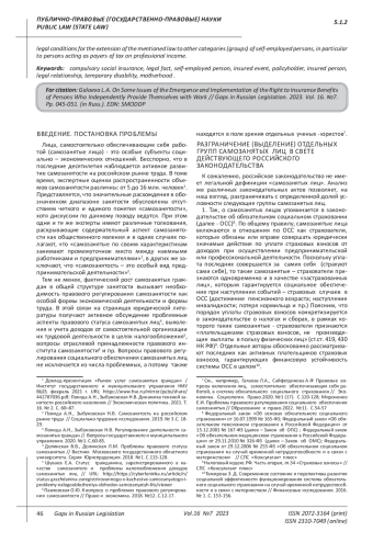 Dolinskaya V.V., Dolinskaya L.M. Problems of the legal status of the self-employed // Bulletin of the Moscow State Regional University. Series Jurisprudence. 2018. No. 1. P.113-128. EDN: XMKZRJ