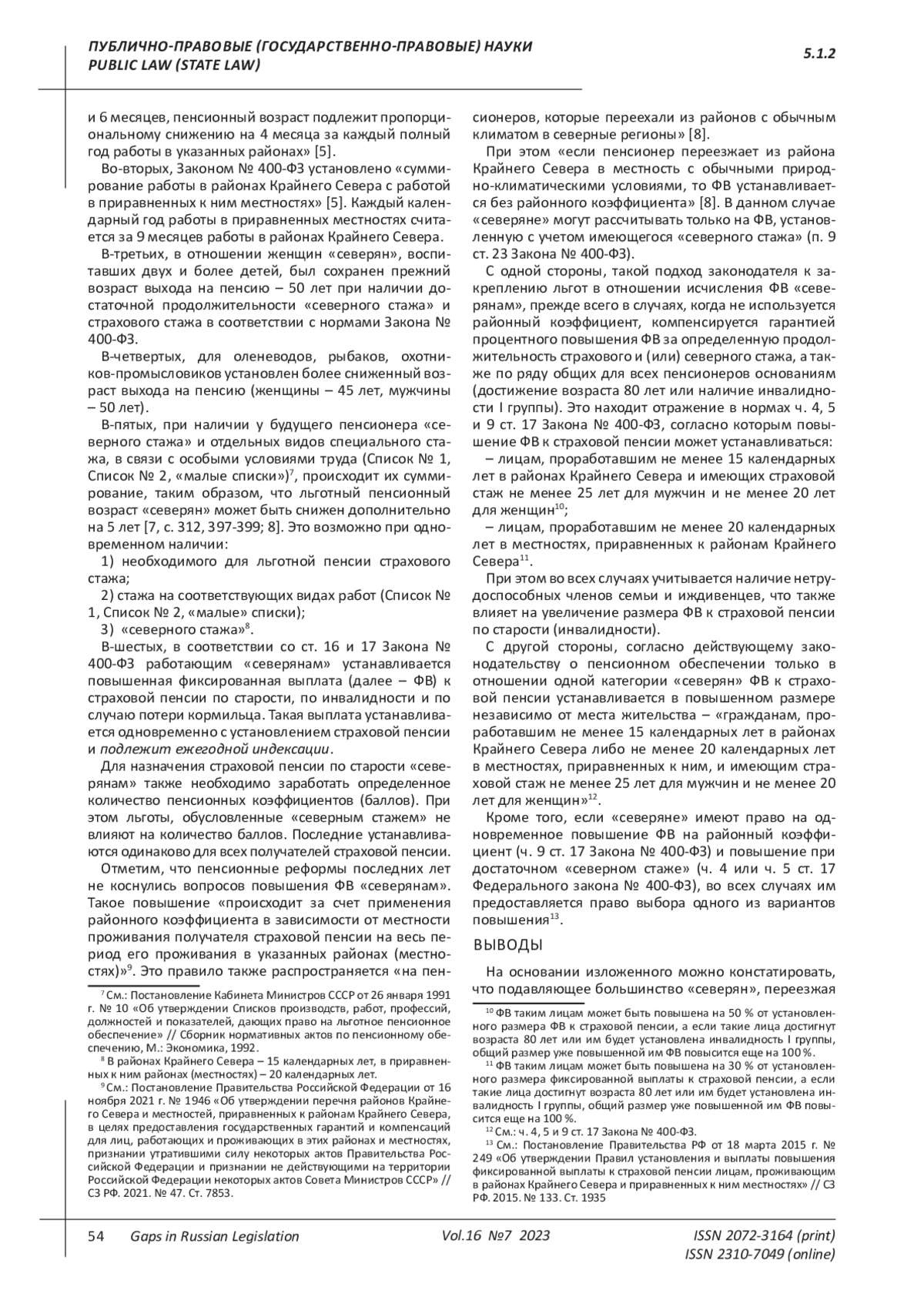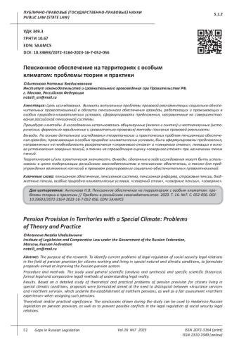 Статья: ПЕНСИОННОЕ ОБЕСПЕЧЕНИЕ НА ТЕРРИТОРИЯХ С ОСОБЫМ КЛИМАТОМ: ПРОБЛЕМЫ ТЕОРИИ И ПРАКТИКИ (2023)
