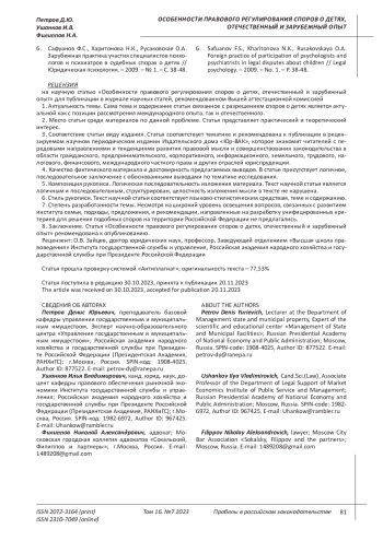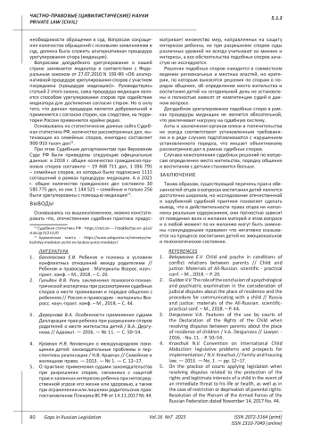 Guldan V.V. The role of the conclusion of a psychological and psychiatric examination in the consideration of judicial disputes about the place of residence and the procedure for communicating with a child // Russia and justice: materials of the All-Russian. scientific-practical conf. - M., 2018. - P. 44.
