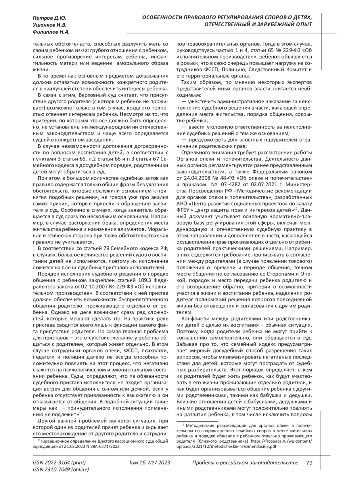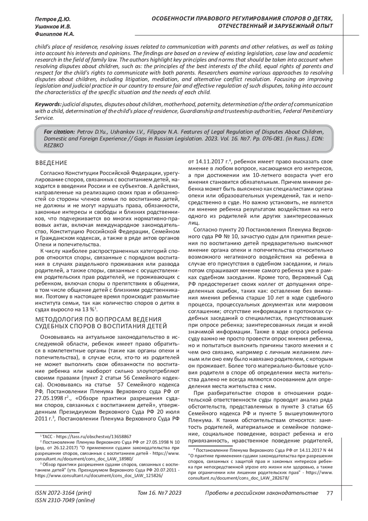 Safuanov F.S., Kharitonova N.K., Rusakovskaya O.A. Foreign practice of participation of psychologists and psychiatrists in legal disputes about children // Legal psychology. - 2009. - No. 1. - P. 38-48. EDN: KNXHSD