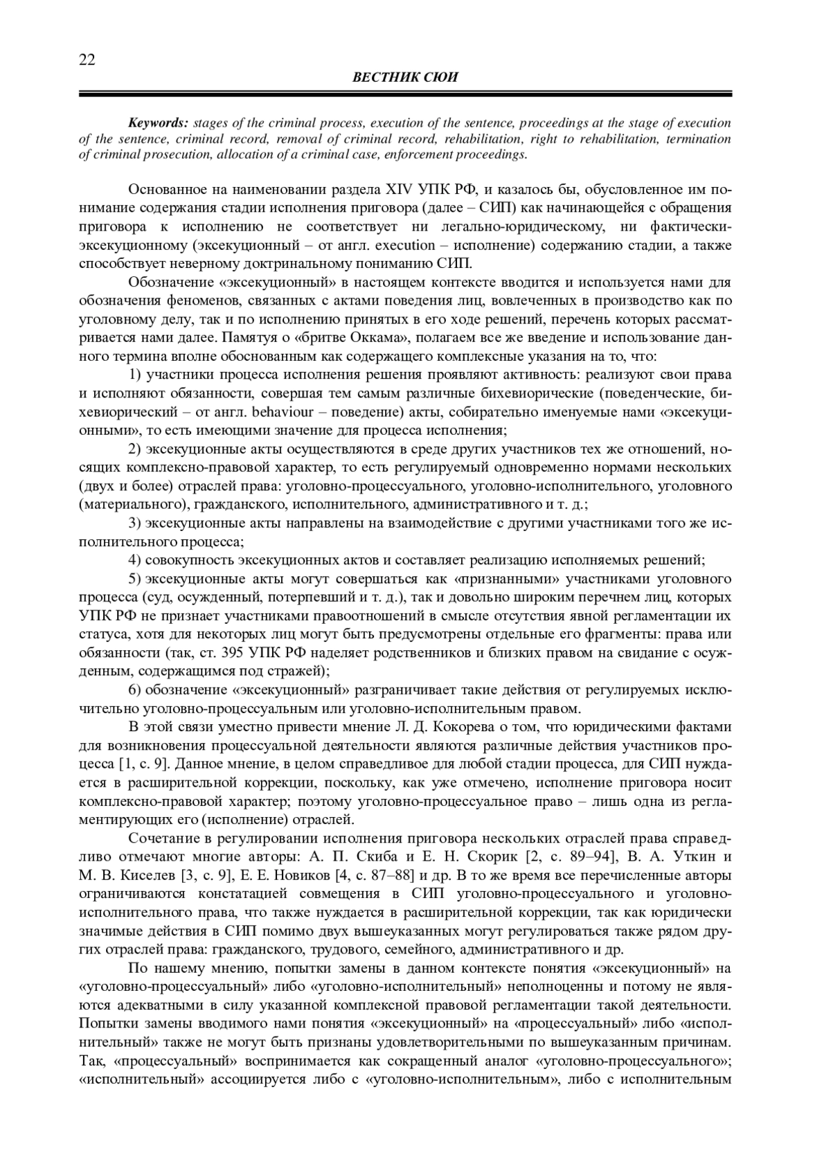Основанное на наименовании раздела XIV УПК РФ, и казалось бы, обусловленное им понимание содержания стадии исполнения приговора (далее – СИП) как начинающейся с обращения приговора к исполнению не соответствует ни легально-юридическому, ни фактически эксекуционному (эксекуционный – от англ. execution – исполнение) содержанию стадии, а также способствует неверному доктринальному пониманию СИП.