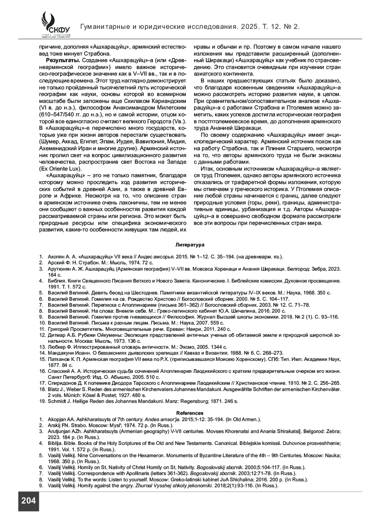 1. Акопян А. А. «Ашхарацуйц» VII века // Андес амсорья. 2015. № 1-12. С. 35-194. (на древнеарм. яз.).