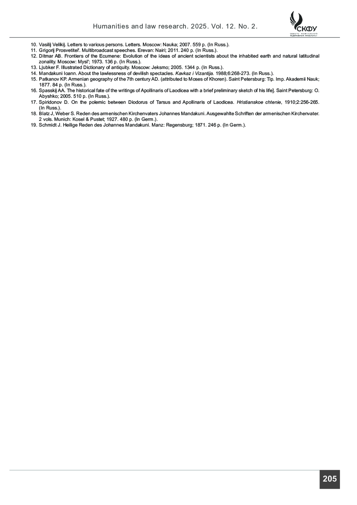 18. Blatz J., Weber S. Reden des armenischen Kirchenvaters Johannes Mandakuni. Ausgewählte Schriften der armenischen Kirchenväter. 2 vols. Münich: Kösel & Pustet; 1927. 480 s.