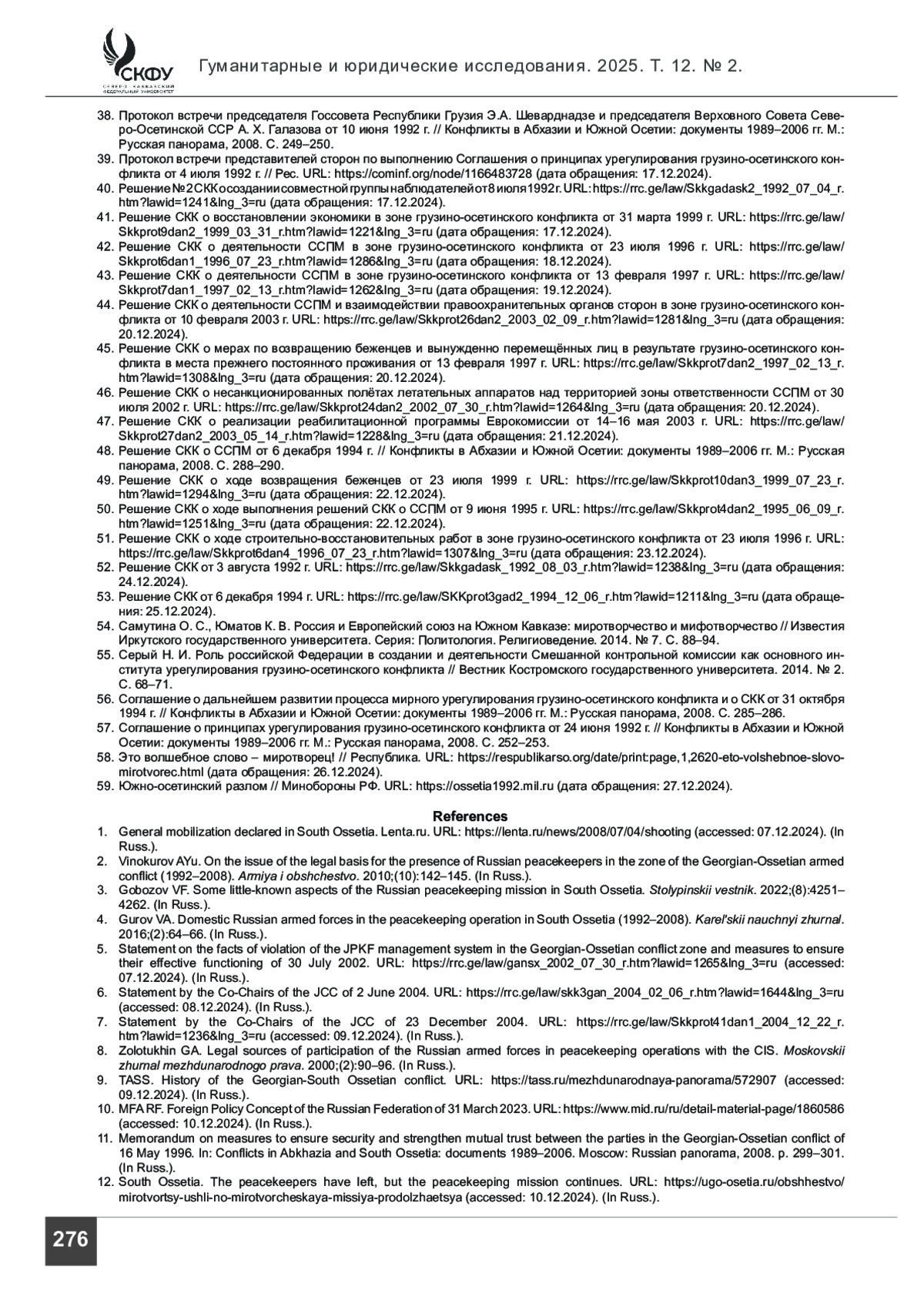 3. Гобозов В. Ф. Некоторые малоизвестные аспекты российской миротворческой миссии в Южной Осетии // Столыпинский вестник. 2022. № 8. С. 4251-4262.