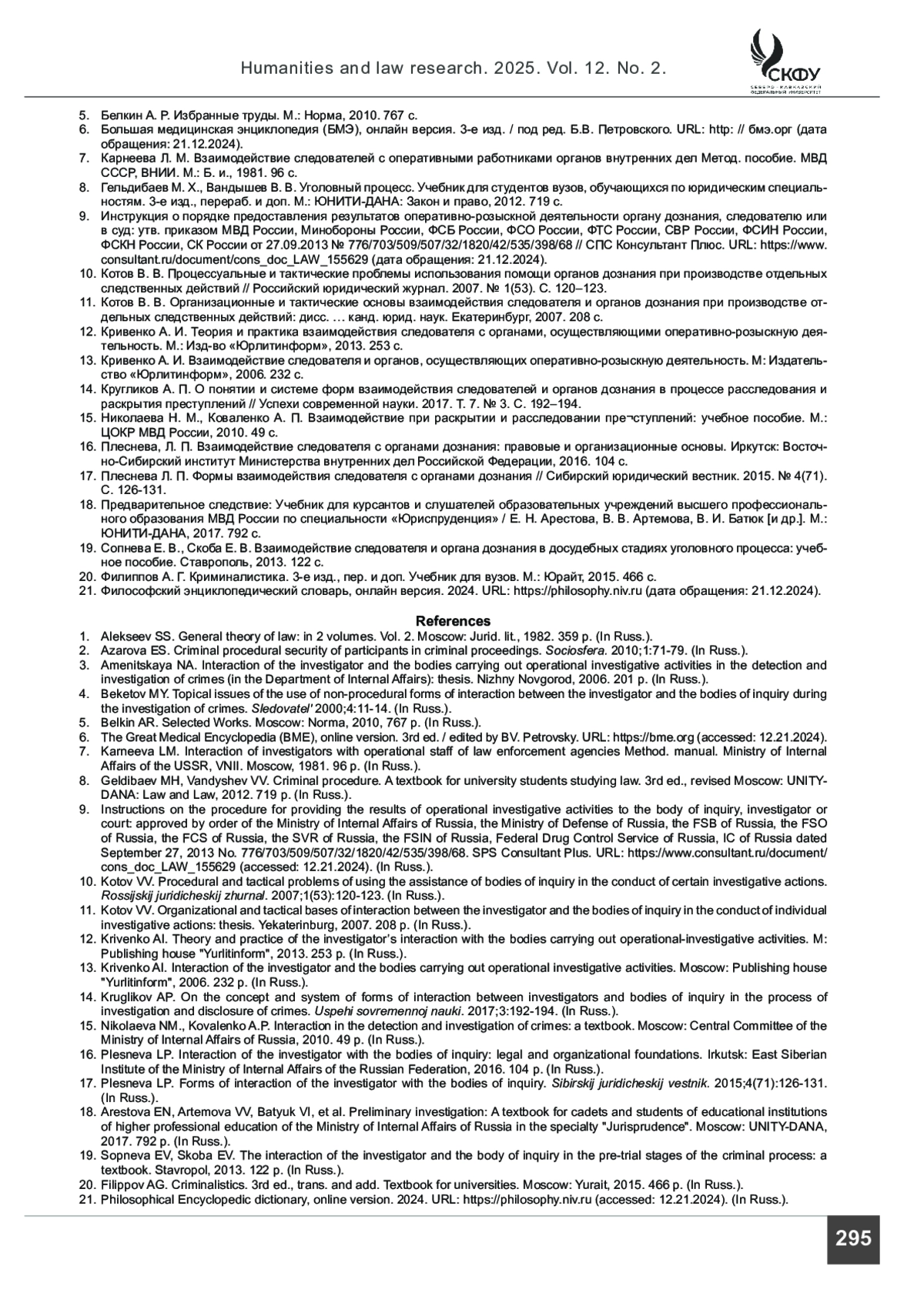 12. Кривенко А. И. Теория и практика взаимодействия следователя с органами, осуществляющими оперативно-розыскную деятельность. М.: Изд-во «Юрлитинформ», 2013. 253 с.