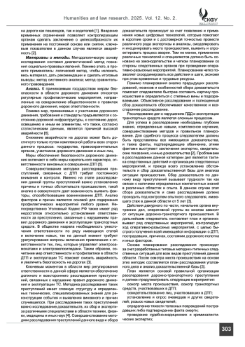 Анализ. Изучение практики работы следственных органов, материалов судебной практики, обзоров и анализ теоретических исследований, связанных с расследованием преступлений, связанных с нарушением правил дорожного движения и эксплуатации транспортных средств показывает, что зачастую нарушением сроков следственных мероприятий и причиной прекращения уголовных дел является неудовлетворительное качество проведения расследования, отдельных мероприятий как способа сбора доказательственной базы в данной категории преступлений. Цель исследования - анализ проблемных аспектов сбора вещественных доказательств как способа доказывания при расследовании преступлений, связанных с нарушением правил дорожного движения и эксплуатации транспортных средств.