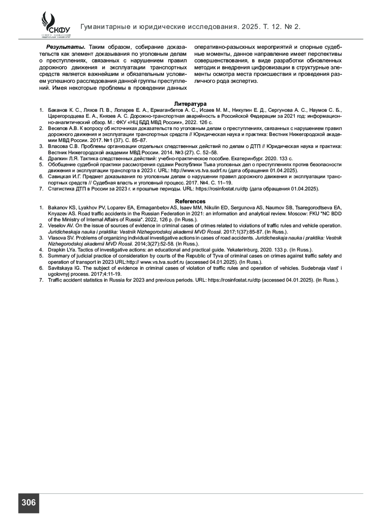 6. Савицкая И.Г. Предмет доказывания по уголовным делам о нарушении правил дорожного движения и эксплуатации транспортных средств // Судебная власть и уголовный процесс. 2017. №4. С. 11-19.