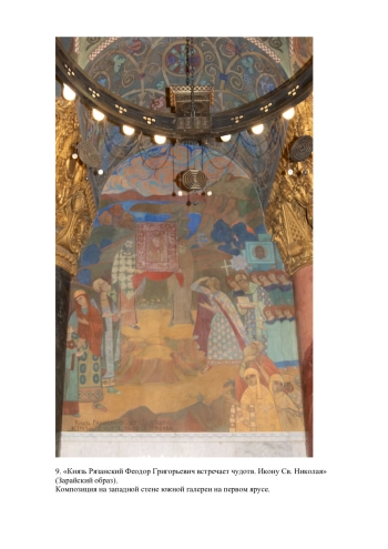 The article examines the features of the iconographic program of murals dedicated to St. Nicholas the Wonderworker, the holy patron of the Kronstadt Naval Cathedral, which were executed at the beginning of the XX century by the artist Mikhail Vasiliev, national-romantic trend of Art Nouveau associated with the ideology of “Holy Russia”. The inclusion of new plots about the revered Russian icons of St. Nicholas the Wonderworker in the canonically developed iconography of the miracles of the saint, stylistically depicted in the spirit of the Russian epic tale, reflected the national-patriotic orientation of the temple iconography associated with the idea of the visible embodiment of Holy Russia as the only successor to the true Christian faith.