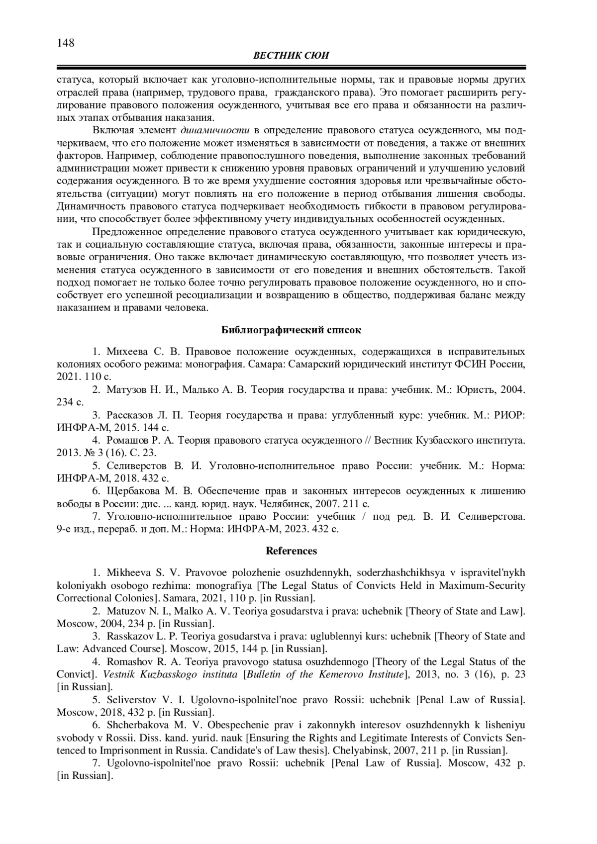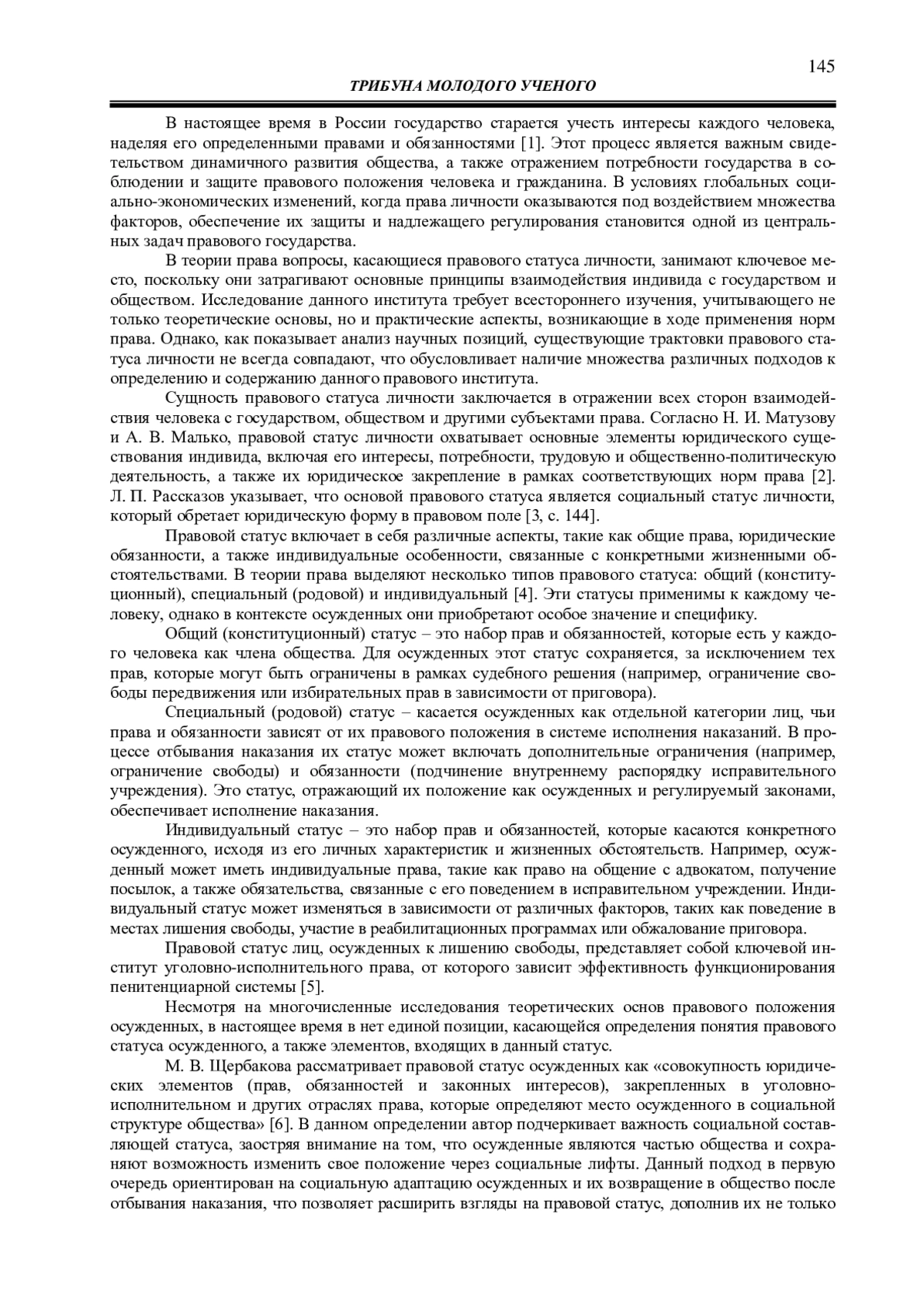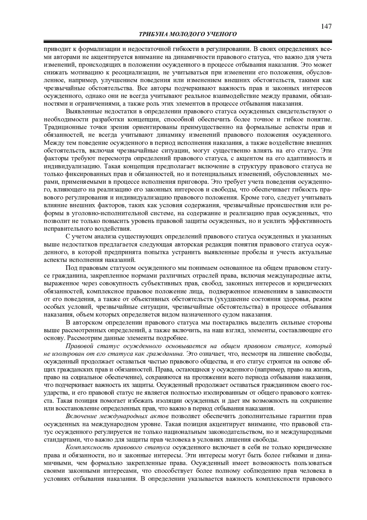 Статья: ПОНЯТИЕ ПРАВОВОГО СТАТУСА ОСУЖДЕННОГО: ТЕОРЕТИКО-ПРАВОВОЙ АСПЕКТ (2025)
