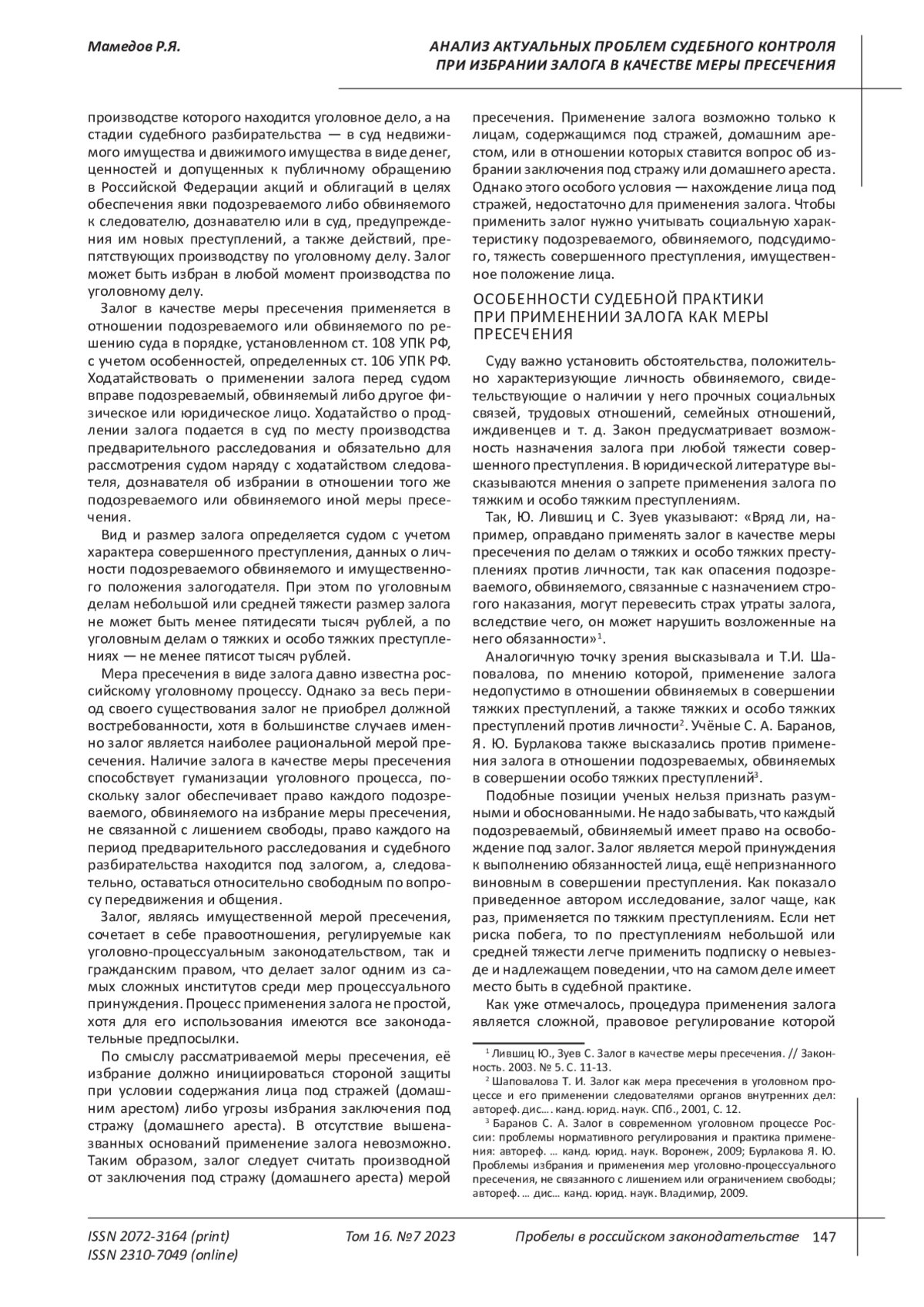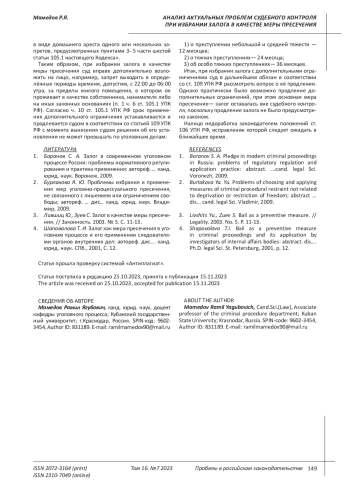 3. 	Лившиц Ю., Зуев С. Залог в качестве меры пресечения. // Законность. 2003. № 5. С. 11-13. EDN: YSGYIJ