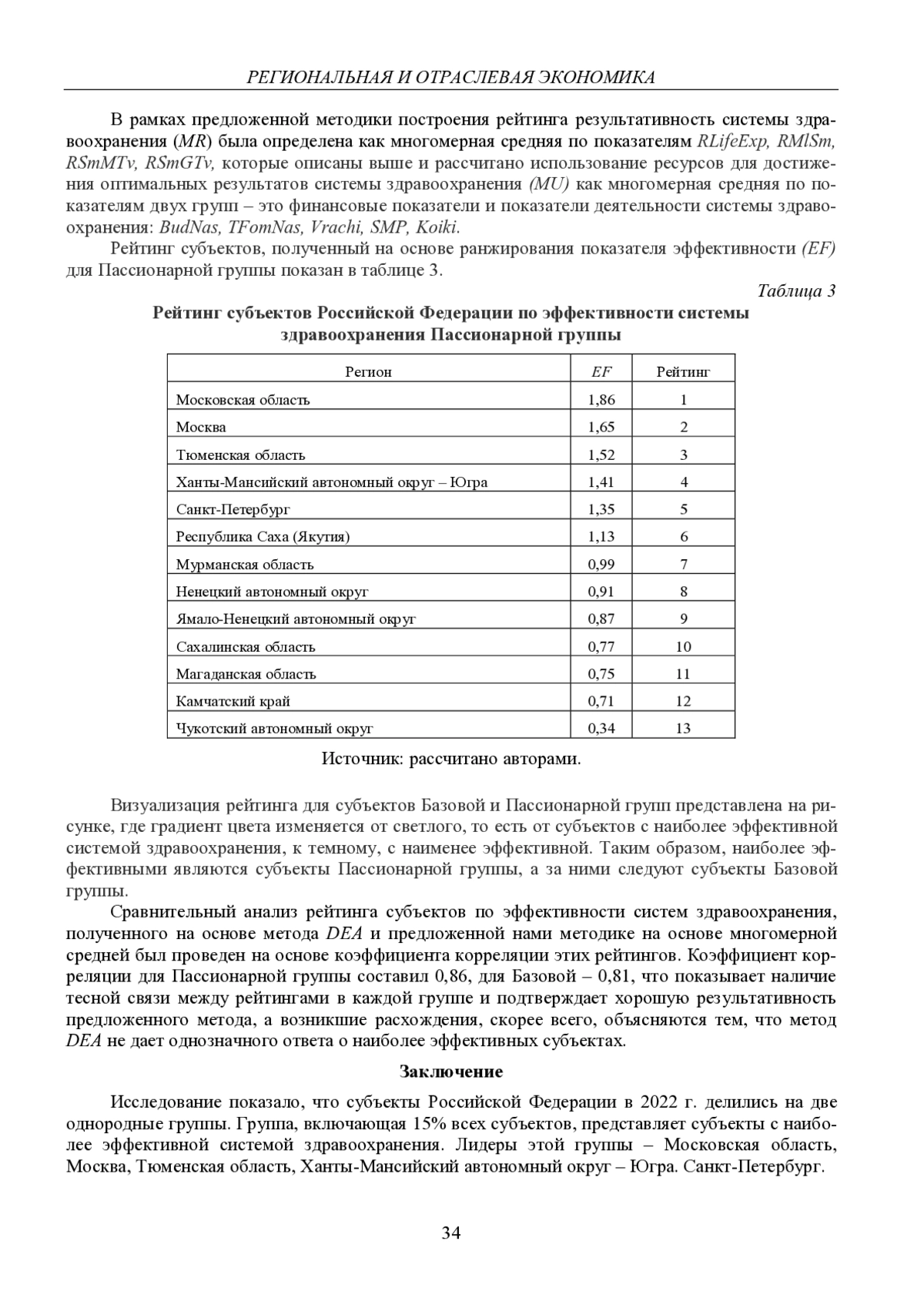 Статья: ЭФФЕКТИВНОСТЬ РЕГИОНАЛЬНОЙ СИСТЕМЫ ЗДРАВООХРАНЕНИЯ: РЕЙТИНГ СУБЪЕКТОВ РОССИЙСКОЙ ФЕДЕРАЦИИ (2025)