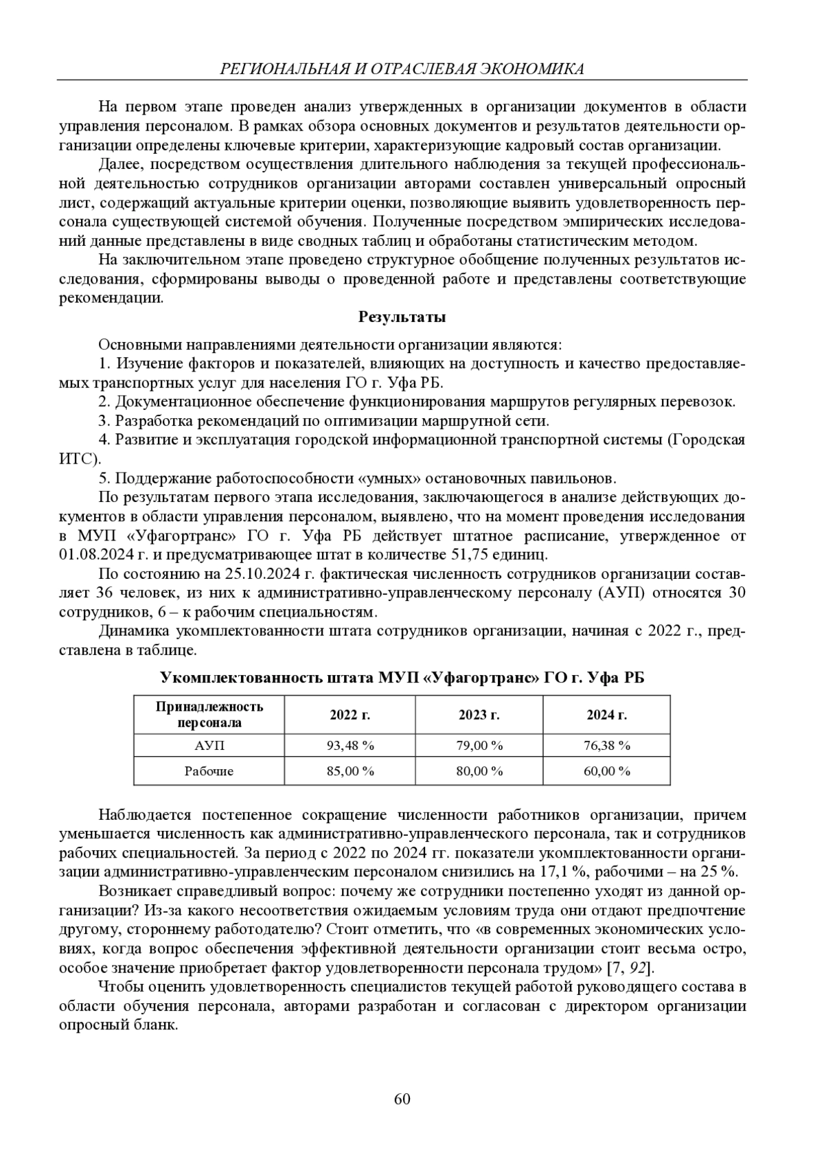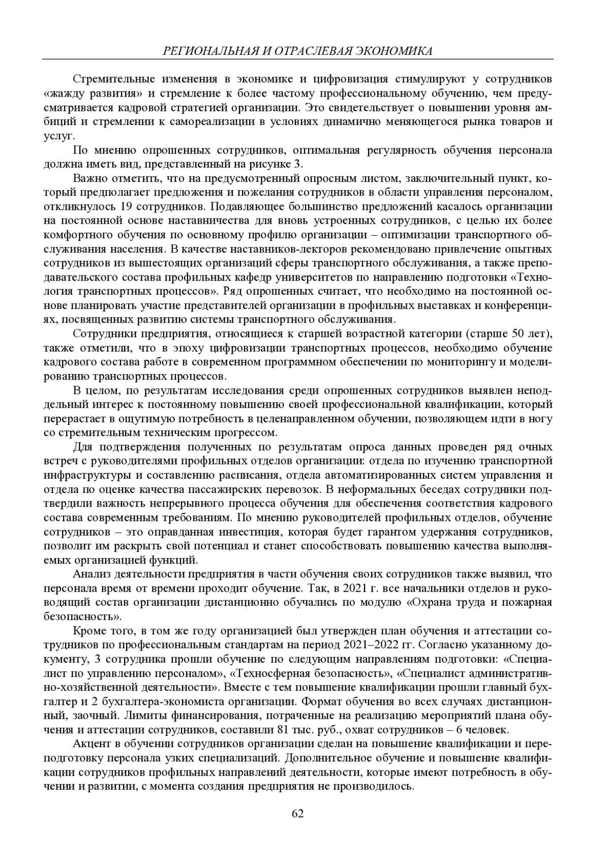 В статье на примере МУП «Уфагортранс» ГО г. Уфа Республики Башкортостан анализируется потребность современных предприятий транспортной отрасли в обучении персонала. Выявлены основные проблемы, накопленные в данной сфере. Представлены результаты исследования потребности в обучении персонала организации, полученные в результате проведения опроса