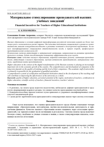 Высшее образование в условиях цифровой трансформации российской экономики играет все более значимую роль в экономическом росте страны. От качества подготовки специалистов и уровня их компетентности зависит конкурентоспособность и развитие компаний в долгосрочной перспективе. За выпуск квалифицированных специалистов ответственность несет, в первую очередь, профессорскопреподавательский состав вузов [2]. Комплексная система аттестации и материальной мотивации, направленная на развитие преподавательского состава, будет способствовать повышению эффективности вуза в целом