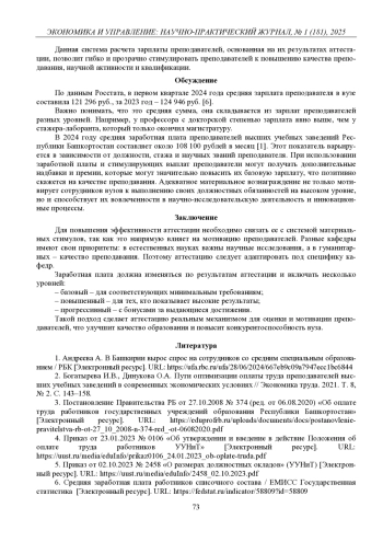 2. 	Богатырева И.В., Динукова О.А. Пути оптимизации оплаты труда преподавателей высших учебных заведений в современных экономических условиях // Экономика труда. 2021. Т. 8, № 2. С. 143-158. EDN: OIJCZY