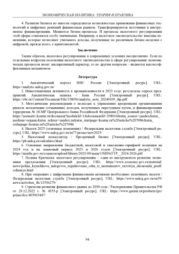 7. Полина Крючкова: налоговое регулирование - один из инструментов развития экономики предложения [Электронный ресурс]. URL: https://www.economy.gov.ru/material/news/polina_kryuchkova_nalogovoe_regulirovanie_odin_iz_instrumentov_razvitiya_ekonomiki_predlozheniya.html.