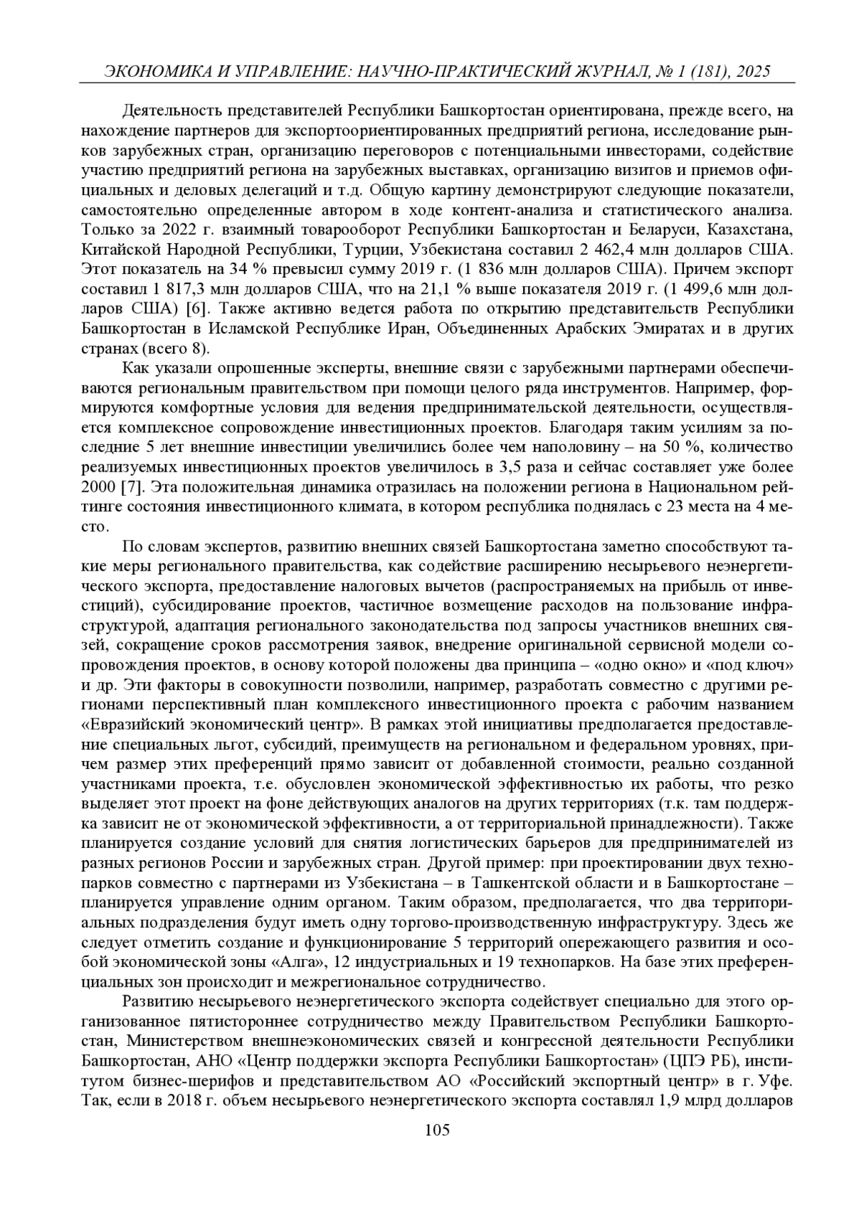 ЖЕЛНОВА А. В. ТЕНДЕНЦИИ РАЗВИТИЯ ВНЕШНИХ СВЯЗЕЙ РЕСПУБЛИКИ БАШКОРТОСТАН С ЗАРУБЕЖНЫМИ ПАРТНЕРАМИ В УСЛОВИЯХ САНКЦИОННЫХ ОГРАНИЧЕНИЙ // ЭКОНОМИКА И УПРАВЛЕНИЕ: НАУЧНО-ПРАКТИЧЕСКИЙ ЖУРНАЛ. 2025. № 1 (181)
