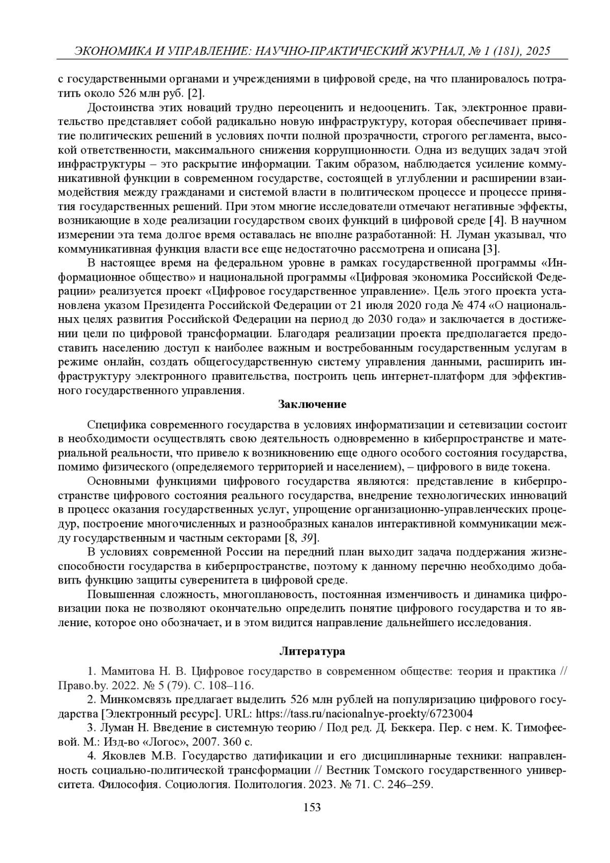 1. Мамитова Н. В. Цифровое государство в современном обществе: теория и практика // Право.by. 2022. № 5 (79). С. 108-116. EDN: RTEGWF