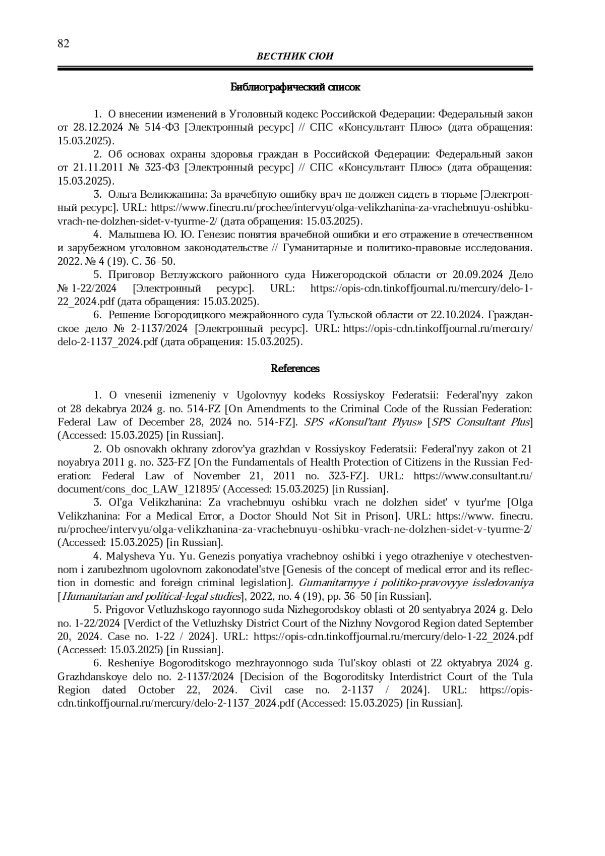 Статья: УГОЛОВНО-ПРАВОВЫЕ АСПЕКТЫ ТОЛКОВАНИЯ ДЕЯНИЙ С ПРИЗНАКАМИ ЯТРОГЕНИИ (2025)