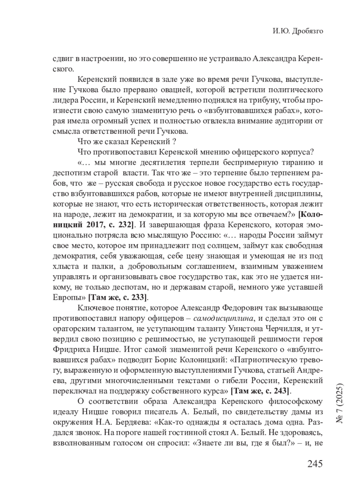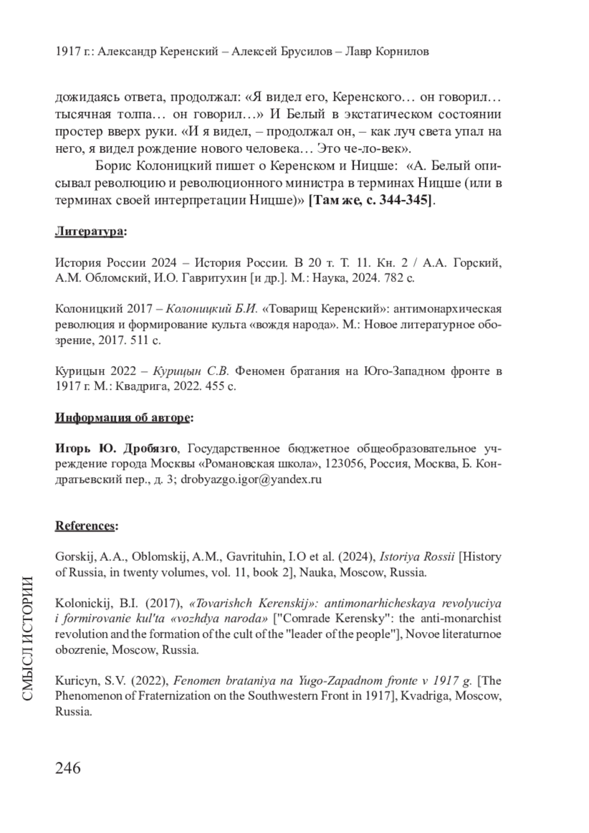 - Колоницкий 2017 – Колоницкий Б.И. «Товарищ Керенский»: антимонархическая революция и формирование культа «вождя народа». М.: Новое литературное обо- зрение, 2017. 511 с.