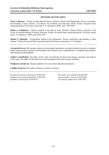 4. Басонов О. А., Решетова В. О. Влияние ультрафиолетовых лучей на гематологические показатели козлят породы Мурсиана-Гранадина // Вестник Нижегородского государственного агротехнологического университета. 2023. № 4(40). С. 63-68. EDN: HPUTYW