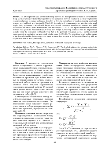 Статья: УРОВЕНЬ ВЗАИМОСВЯЗЕЙ МЕЖДУ ПРИЗНАКАМИ ПРОДУКТИВНОСТИ У ОВЕЦ ПОРОДЫ СОВЕТСКИЙ МЕРИНОС И ИХ ПОМЕСЕЙ СО СТАВРОПОЛЬСКОЙ ПОРОДОЙ (2024)