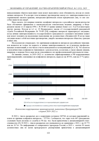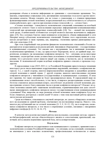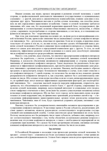 По мере развития сетевой экономики в России среди муниципальных и государственных служащих возникают конфликты интересов. Наличие сетевого блага способно как способствовать возникновению таких конфликтов, так и ограничивать их. Поэтому актуальной является следующая цель исследования: способна ли сетевая экономика защитить себя от данного рода конфликтов или для этого требуются дополнительные меры. Методологическую базу исследования составляют системный и сетевой подход. В ходе исследования оказалось, что на фоне развития сетевой экономики в России происходит снижение числа выявленных правонарушений, связанных с конфликтами интересов среди чиновников