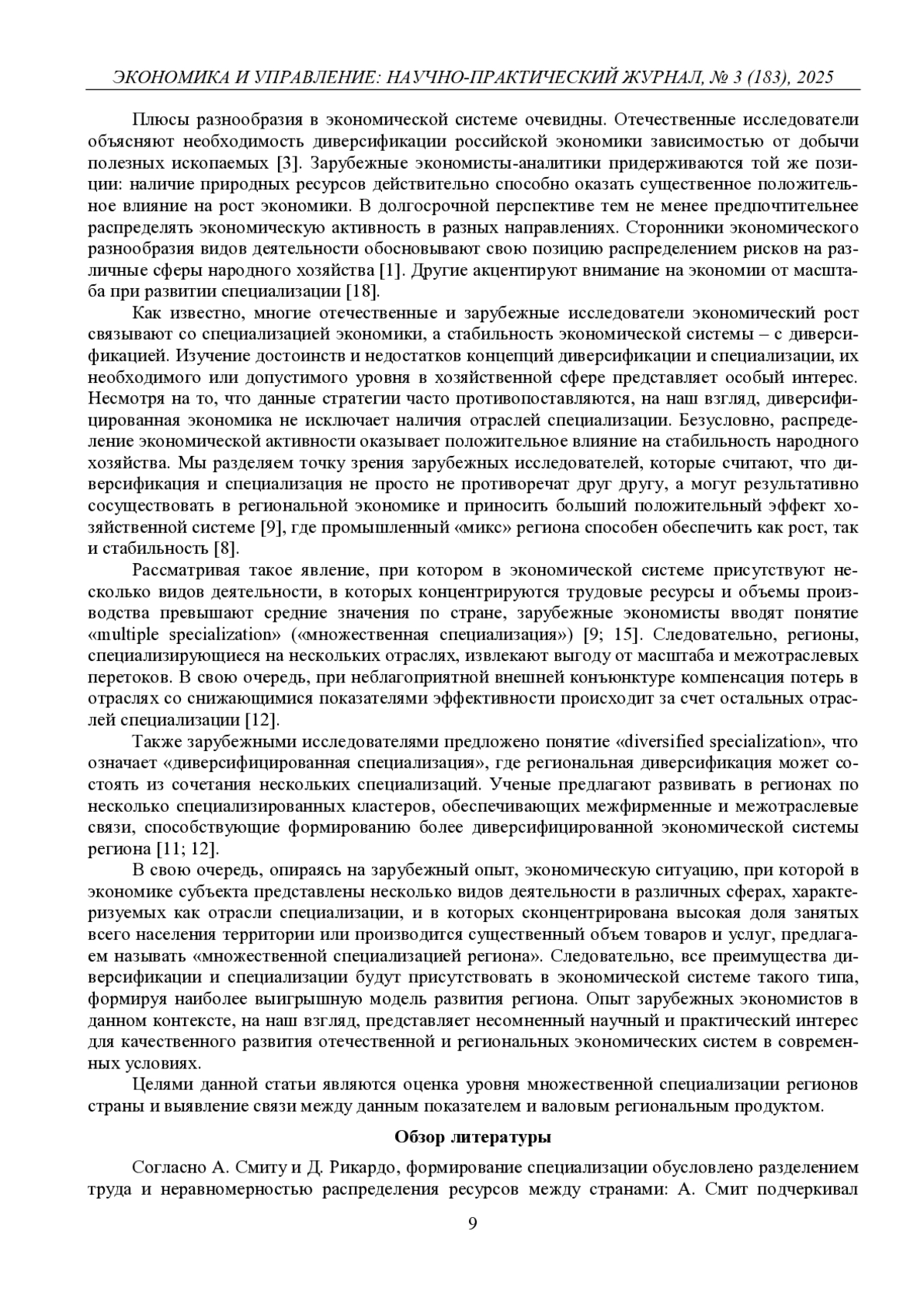 9. 	Chen J. Interpreting Economic Diversity as the Presence of Multiple Specializations // Working Paper. 2018. No. 2. Regional Research Institute, West Virginia University.