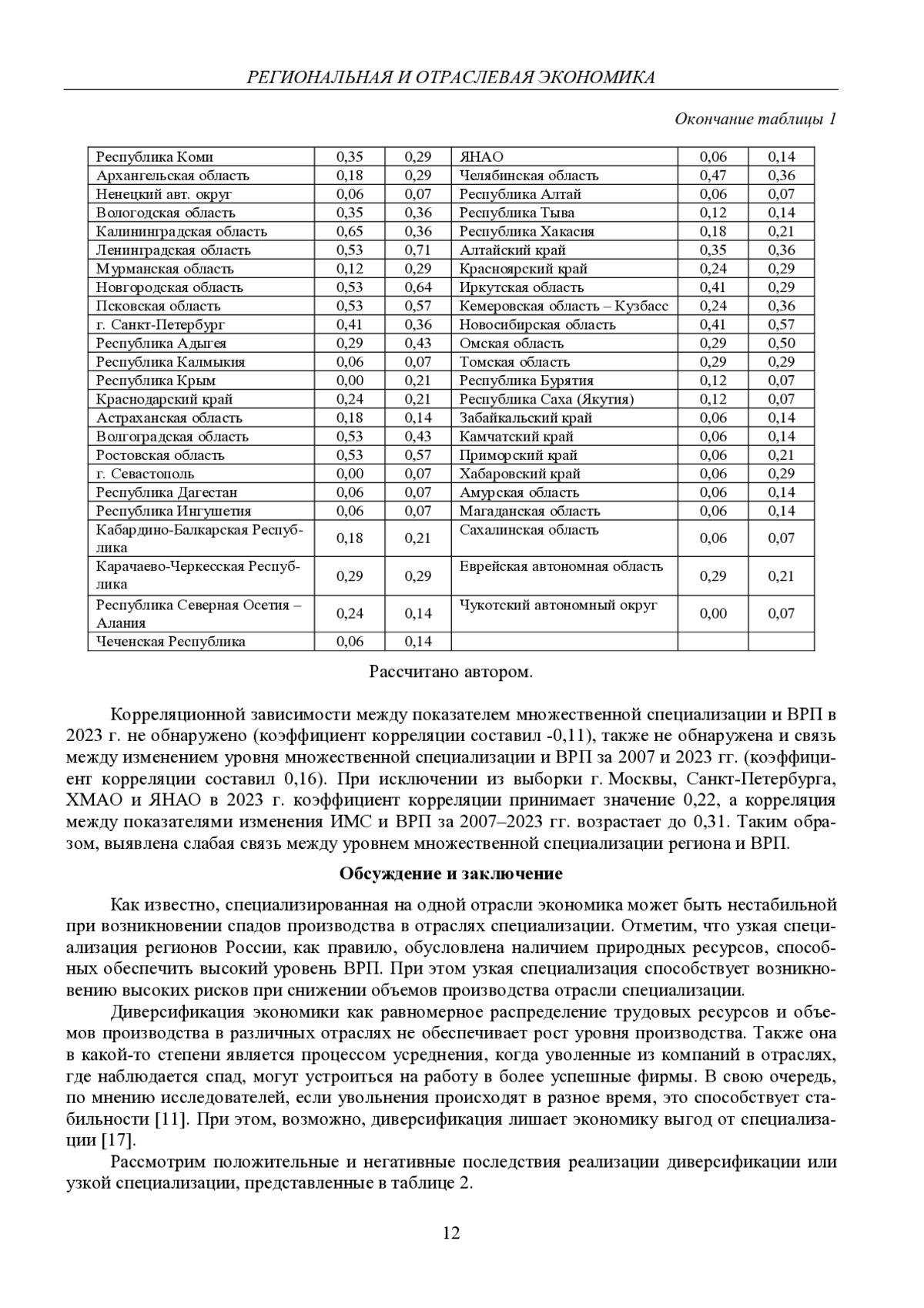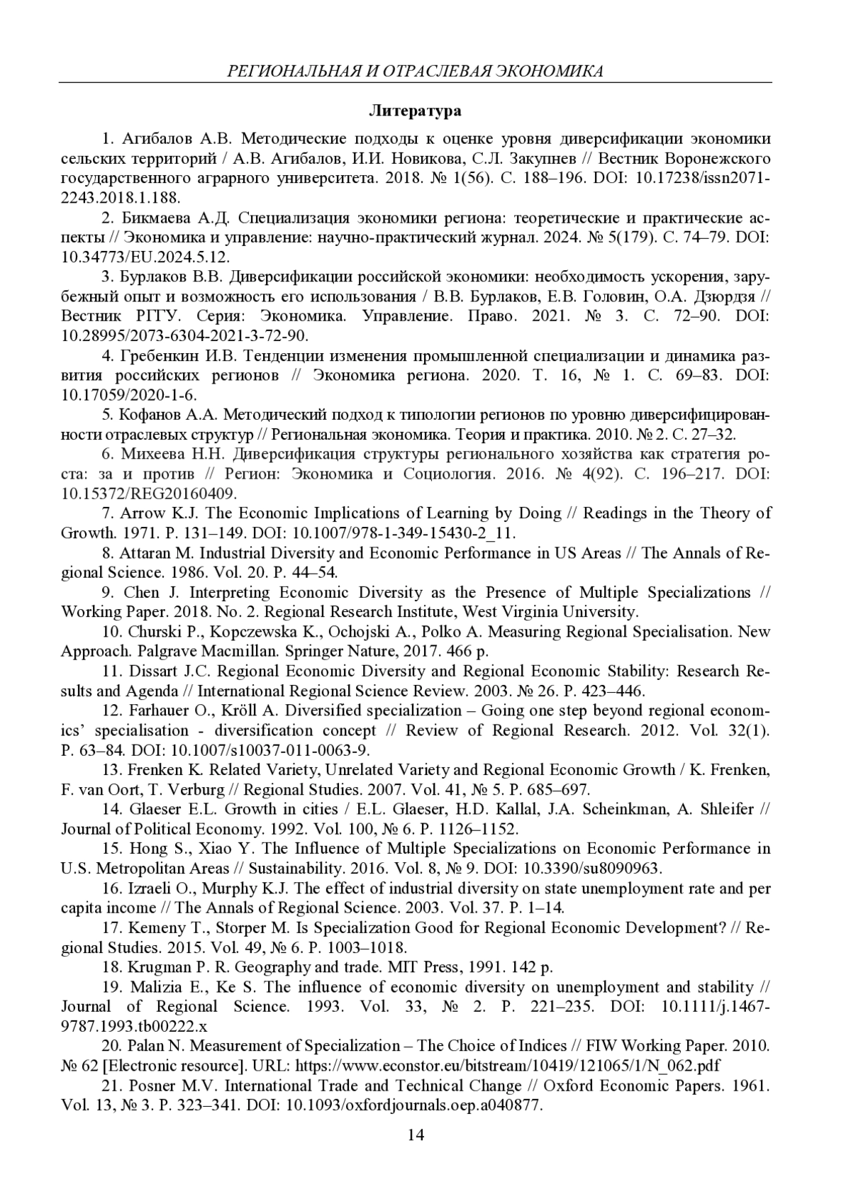 12. 	Farhauer O., Kröll A. Diversified specialization - Going one step beyond regional economics’ specialisation - diversification concept // Review of Regional Research. 2012. Vol. 32(1). P. 63-84.  DOI: 10.1007/s10037-011-0063-9