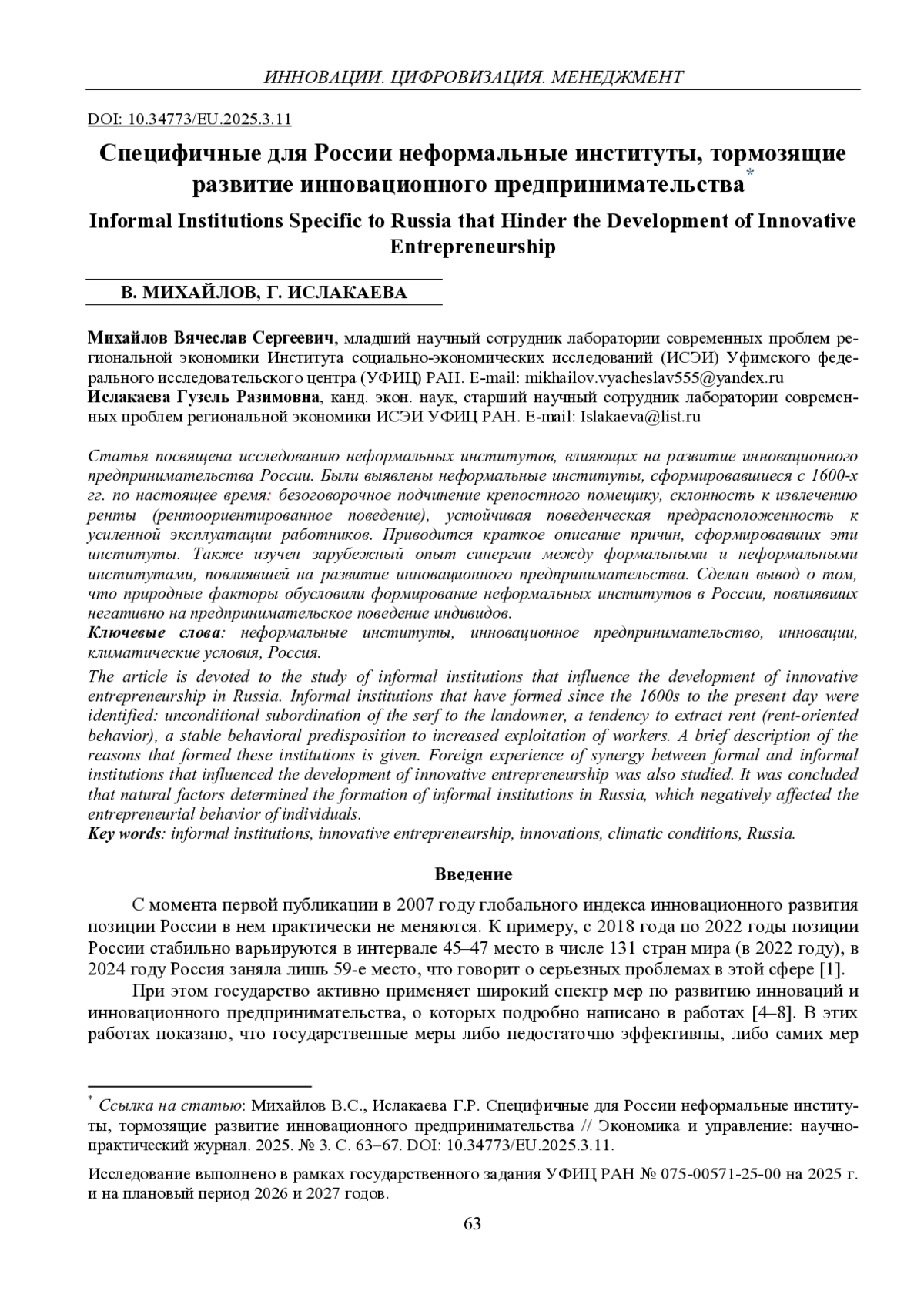 9. 	Михайлов В.С. Влияние неформальных институтов, сформировавшихся под влиянием климатических условий, на развитие национальной экономики современной России // Инновации и инвестиции. 2024. № 6. С. 293-296.  EDN: CEQVTO