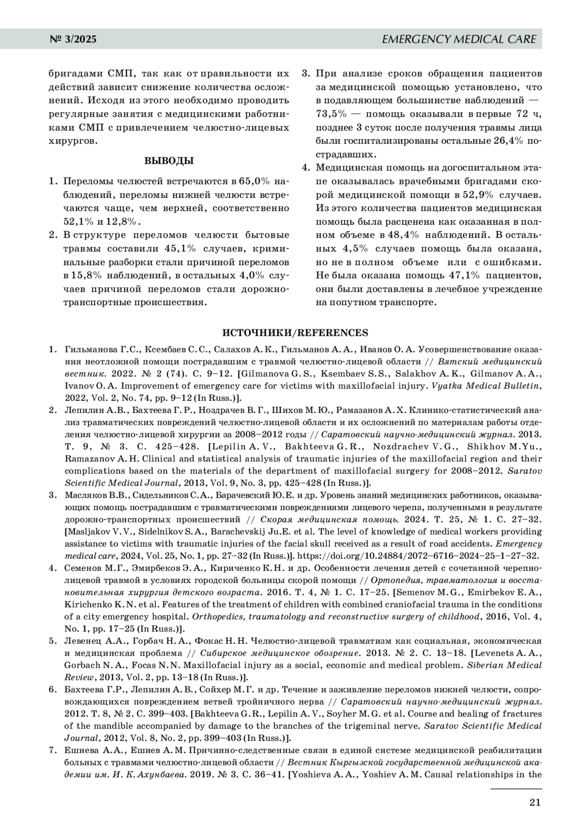 Gilmanova G. S., Ksembaev S. S., Salakhov A. K., Gilmanov A. A., Ivanov O. A. Improvement of emergency care for victims with maxillofacial injury. Vyatka Medical Bulletin, 2022, Vol. 2, No. 74, рр. 9-12 (In Russ.).