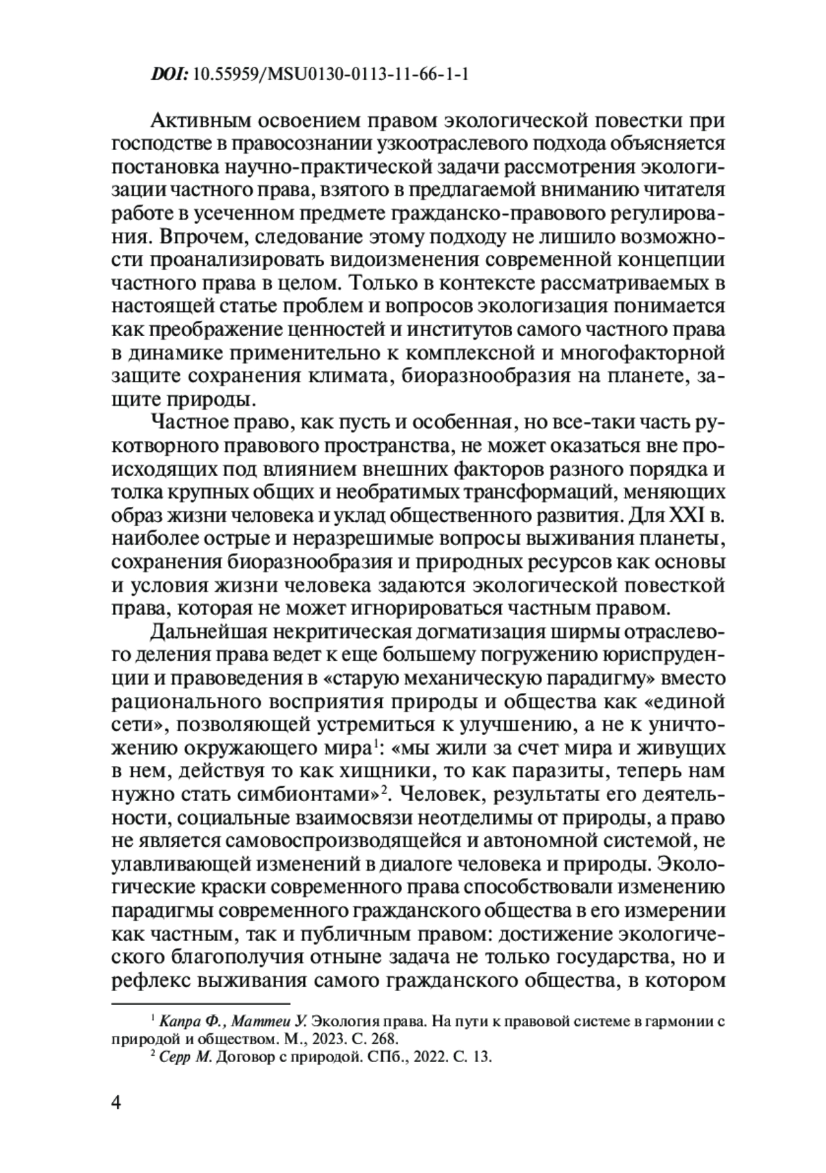 1. 	Капра Ф., Маттеи У. Экология права. На пути к правовой системе в гармонии с природой и обществом. М., 2023.