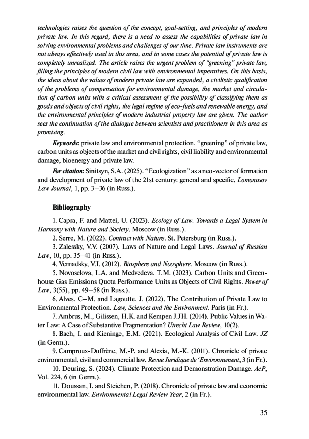 8. 	Bach I., Kieninge E. M. Ökologische Analyse des Zivilrechts // JZ. 2021.