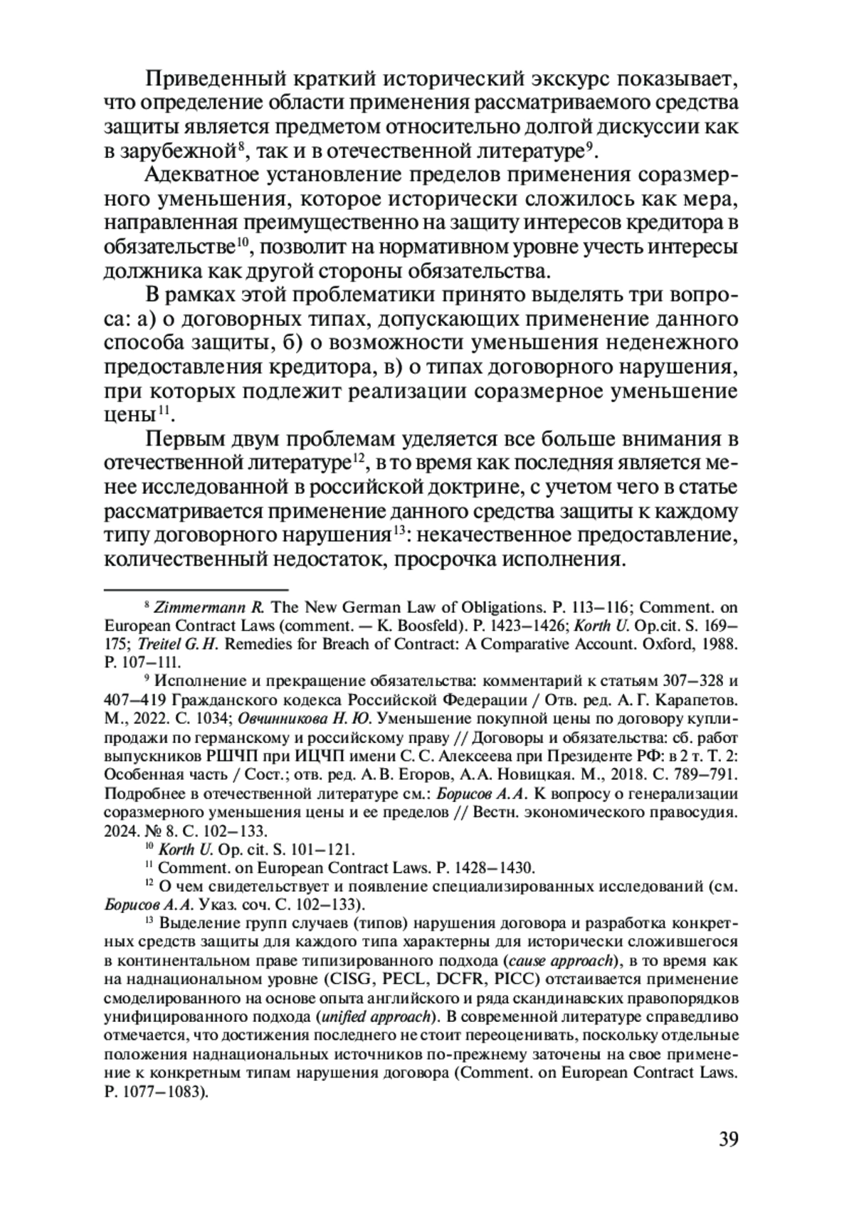 1. 	Борисов А. А. К вопросу о генерализации соразмерного уменьшения цены и ее пределов // Вестн. экономического правосудия. 2024. № 8. С. 102- 132.