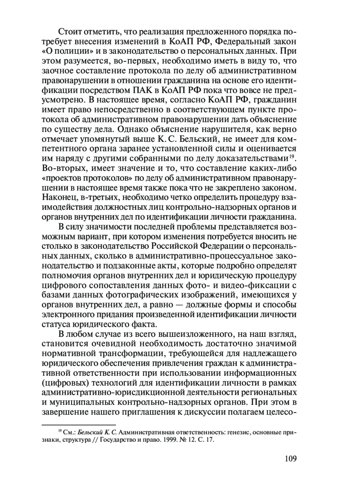 2. Бельский К. С. Административная ответственность: генезис, основные признаки, структура // Государство и право. 1999. № 12. С. 12-20.