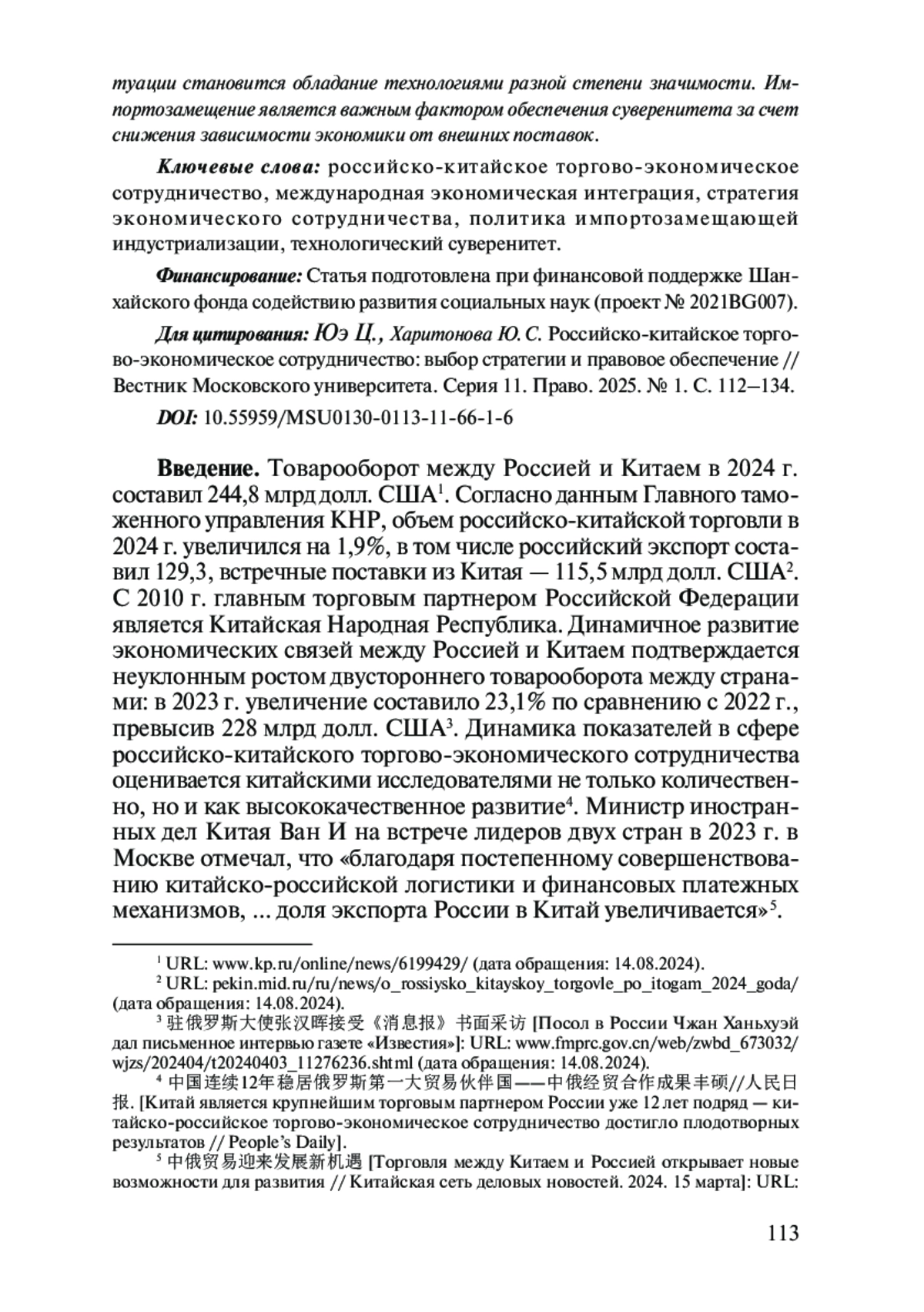 17. 	崔晓敏,苏庆义.全球产业链视角下中俄贸易合作的特征与前景//俄罗斯东欧中亚研究 [Цуй С., Су Ц. Характеристики и перспективы китайско-российского торгового сотрудничества с точки зрения глобальной производственной цепочки // Исследования по России, Восточной Европе и Центральной Азии. 2023. № 2. C. 1-20].