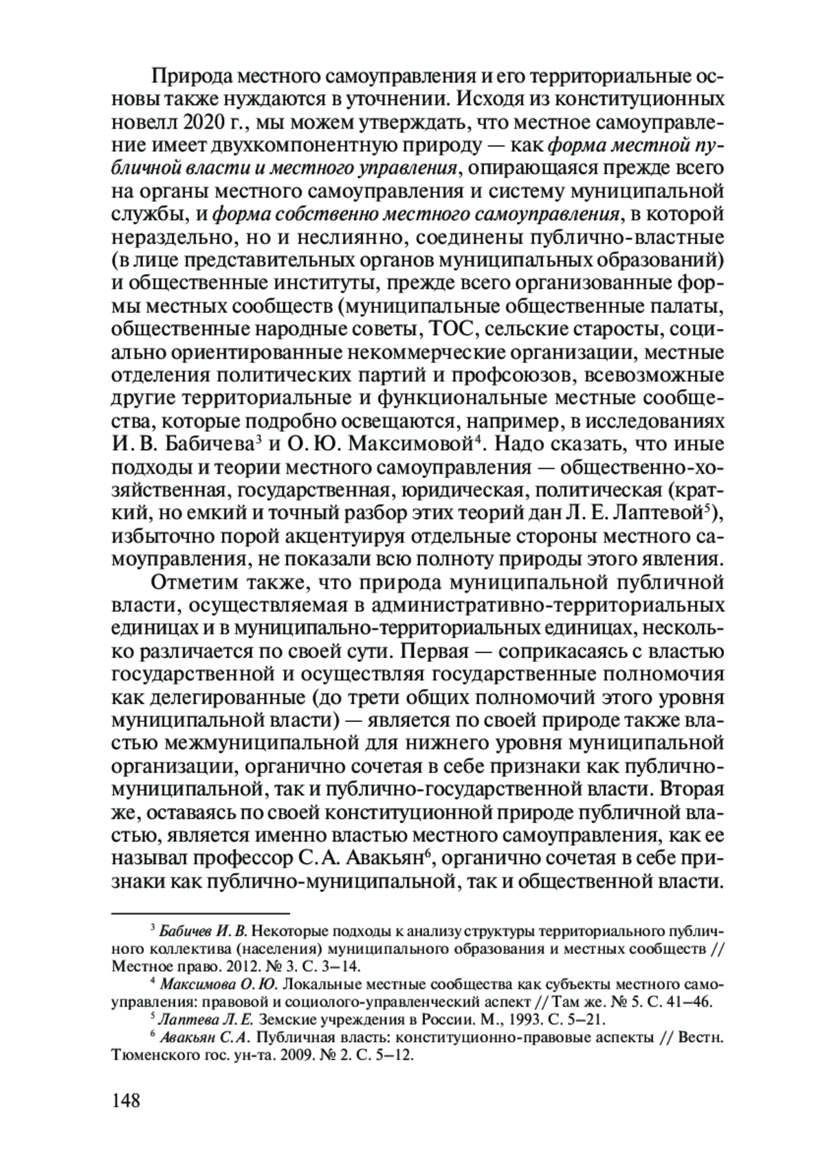 2. Бабичев И. В. Некоторые подходы к анализу структуры территориального публичного коллектива (населения) муниципального образования и местных сообществ // Местное право. 2012. № 3. С. 3-14. EDN: UAVSXR
