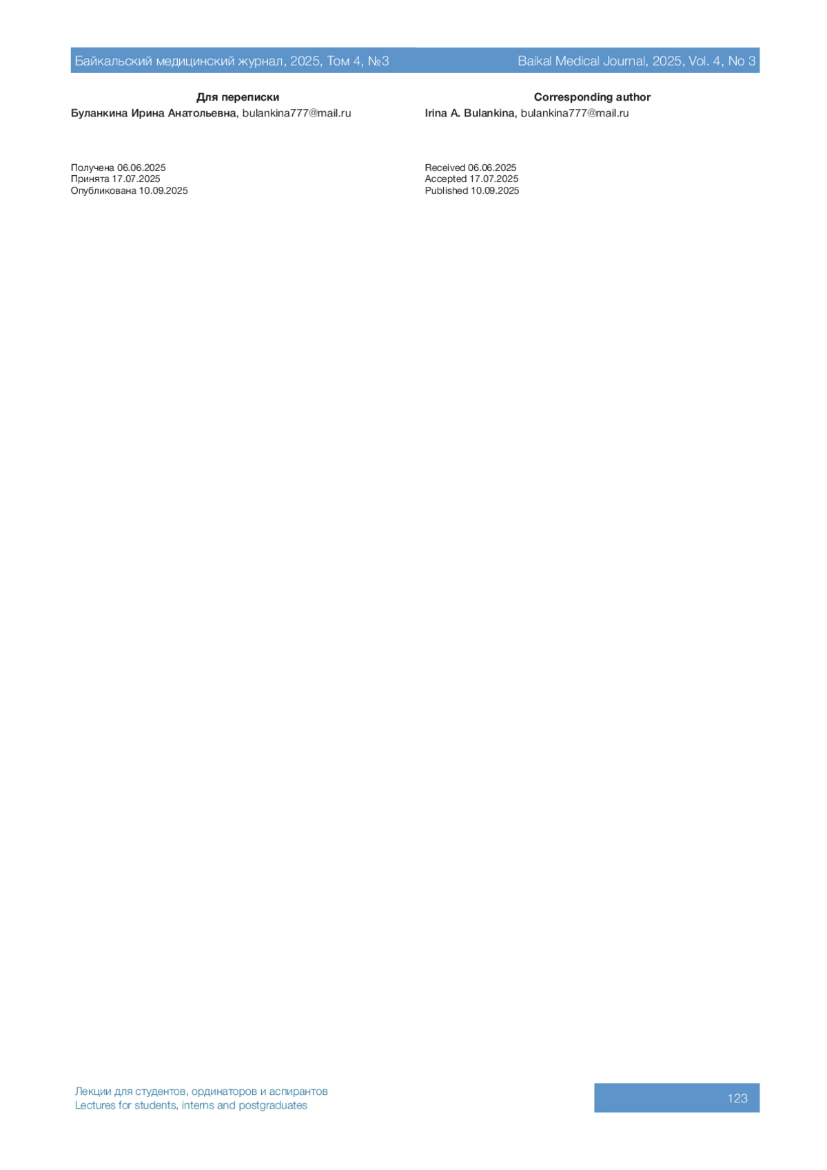 Журнал: БАЙКАЛЬСКИЙ МЕДИЦИНСКИЙ ЖУРНАЛ