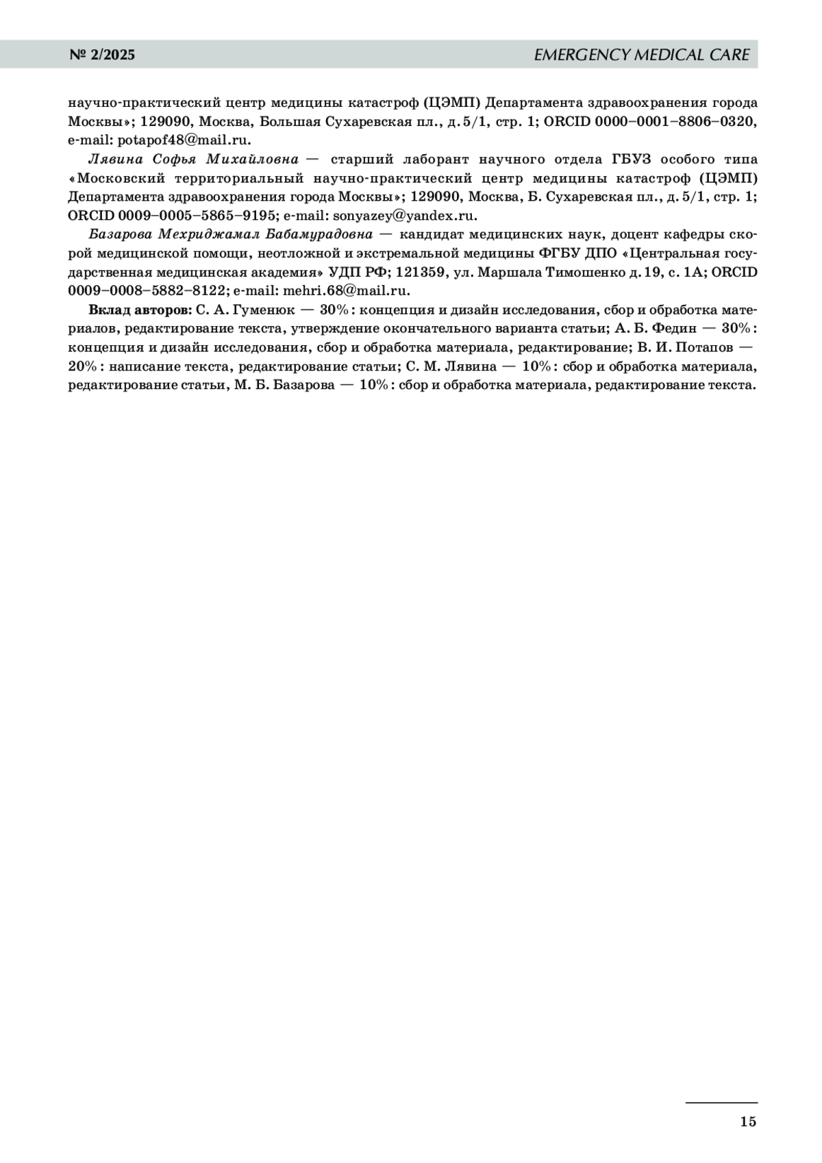5. 	Мирошниченко А.Г., Стожаров В. В., Алимов Р. Р., Москвин В. А. Критерии оценки качества скорой и специализированной медицинской помощи в экстренной форме в стационарных условиях // Скорая медицинская помощь. 2019. № 1. С. 4-11.