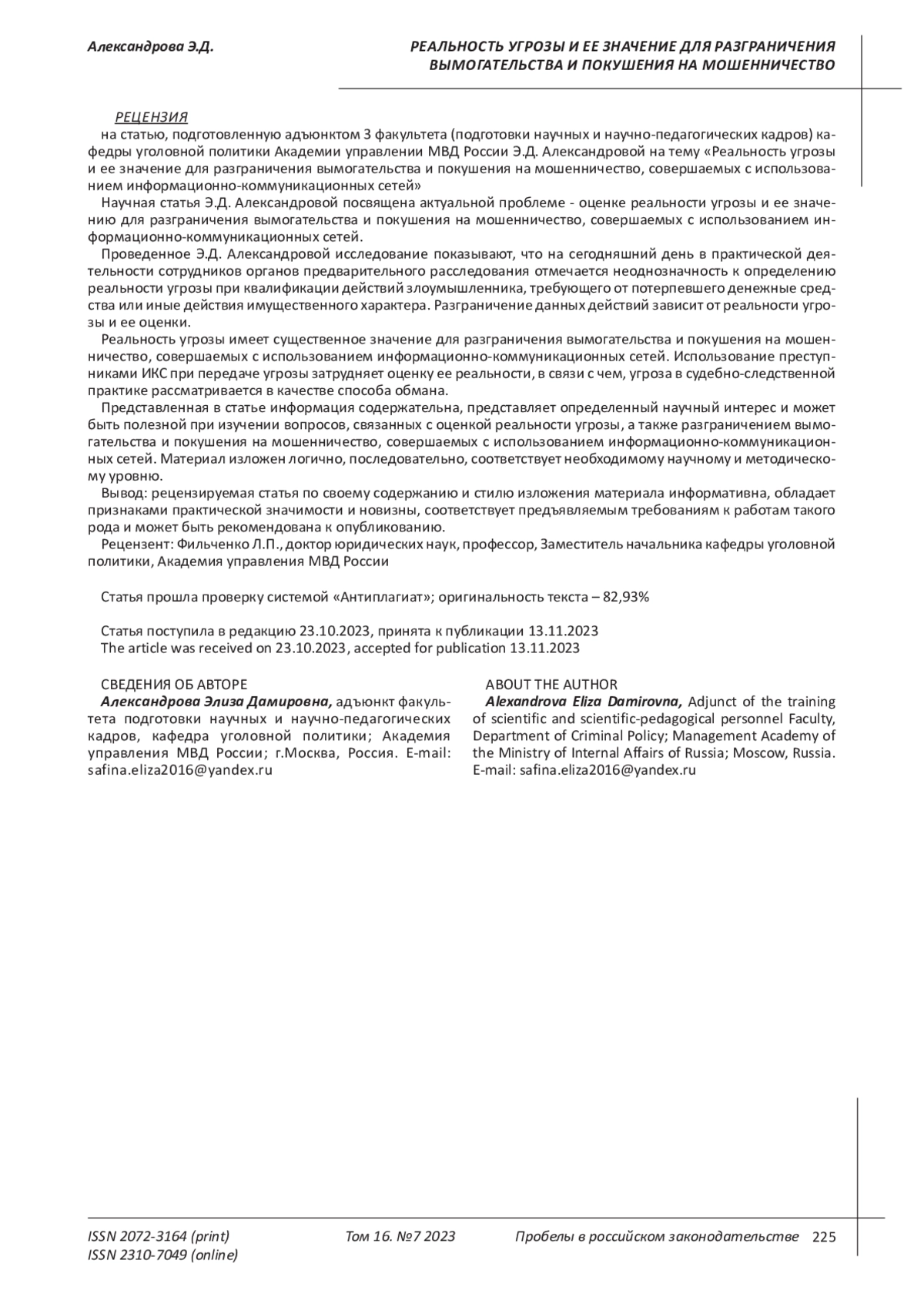 Kuznetsov A.V. Strengthen the fight against threats of murder, grievous bodily harm or destruction of property // Soviet justice. 1964. No. 16. 3 p.