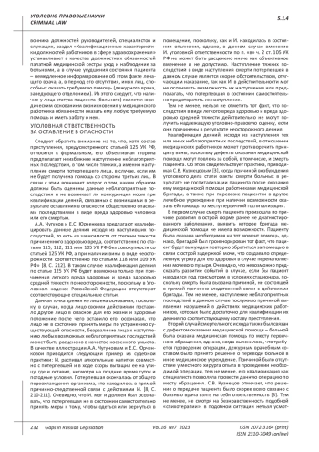 Kuznetsov S.V. Features of forensic medical assistance in proving iatrogenic crimes under Article 125 of the Criminal Code of the Russian Federation // Bulletin of the Moscow Academy of the Investigative Committee of the Russian Federation. 2020. No. 1. Access from LRS “ConsultantPlus”.