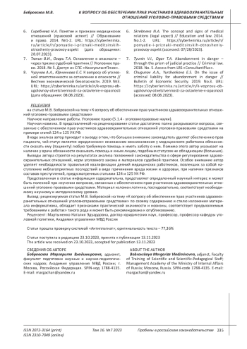 1. Бавсун М. В. Спорные вопросы квалификации ненадлежащего оказания помощи больному // Российский следователь. 2017. №16. Доступ из системы “КонсультантПлюс”. EDN: ZEOULP