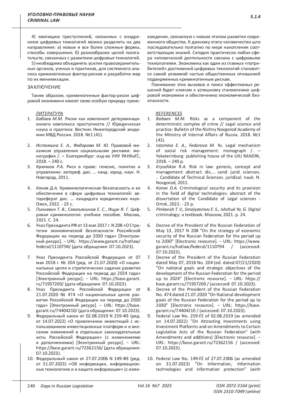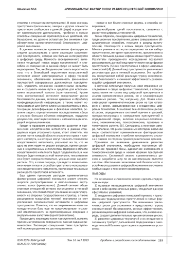 Статья: КРИМИНАЛЬНЫЕ ФАКТОР-РИСКИ РАЗВИТИЯ ЦИФРОВОЙ ЭКОНОМИКИ (2023)